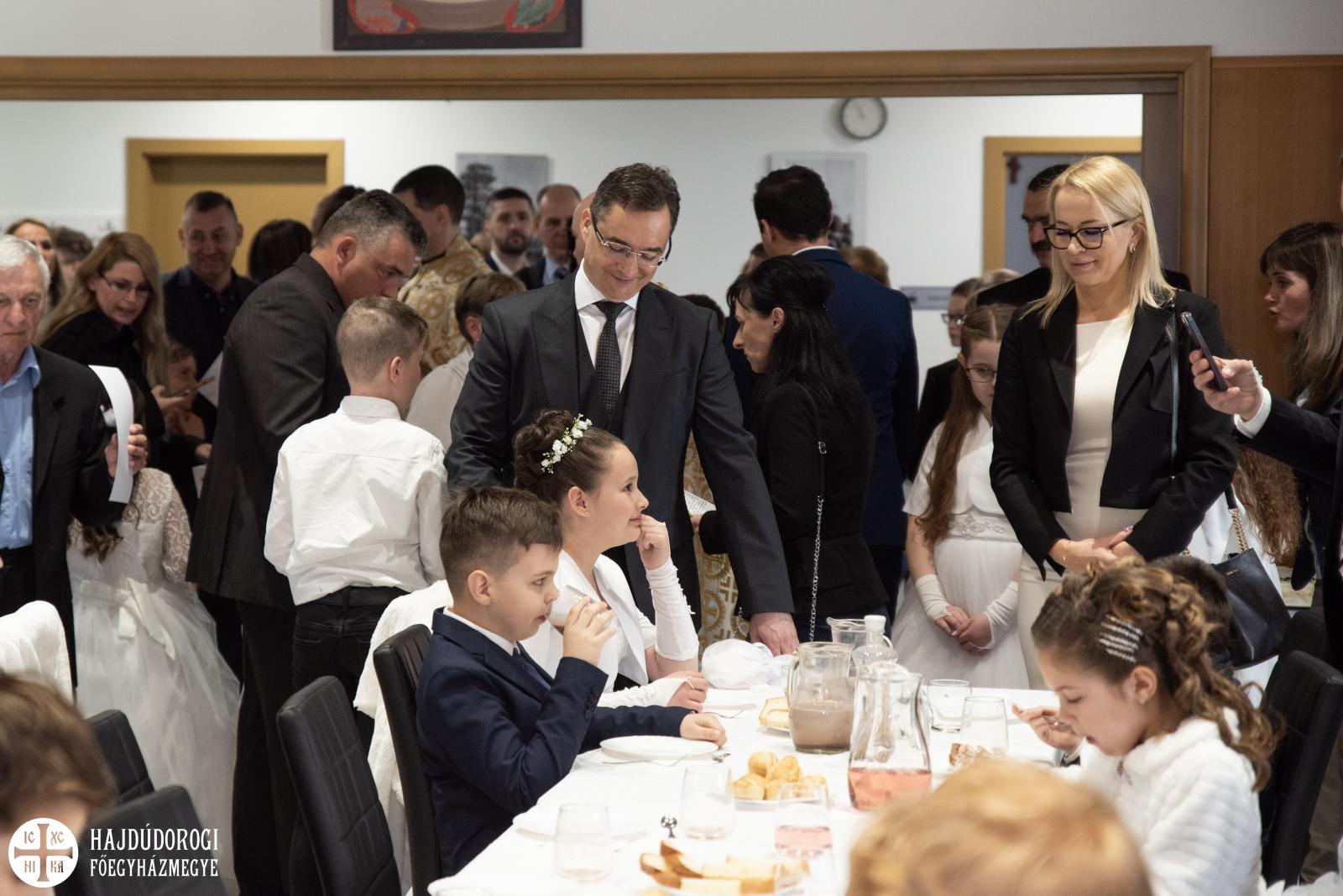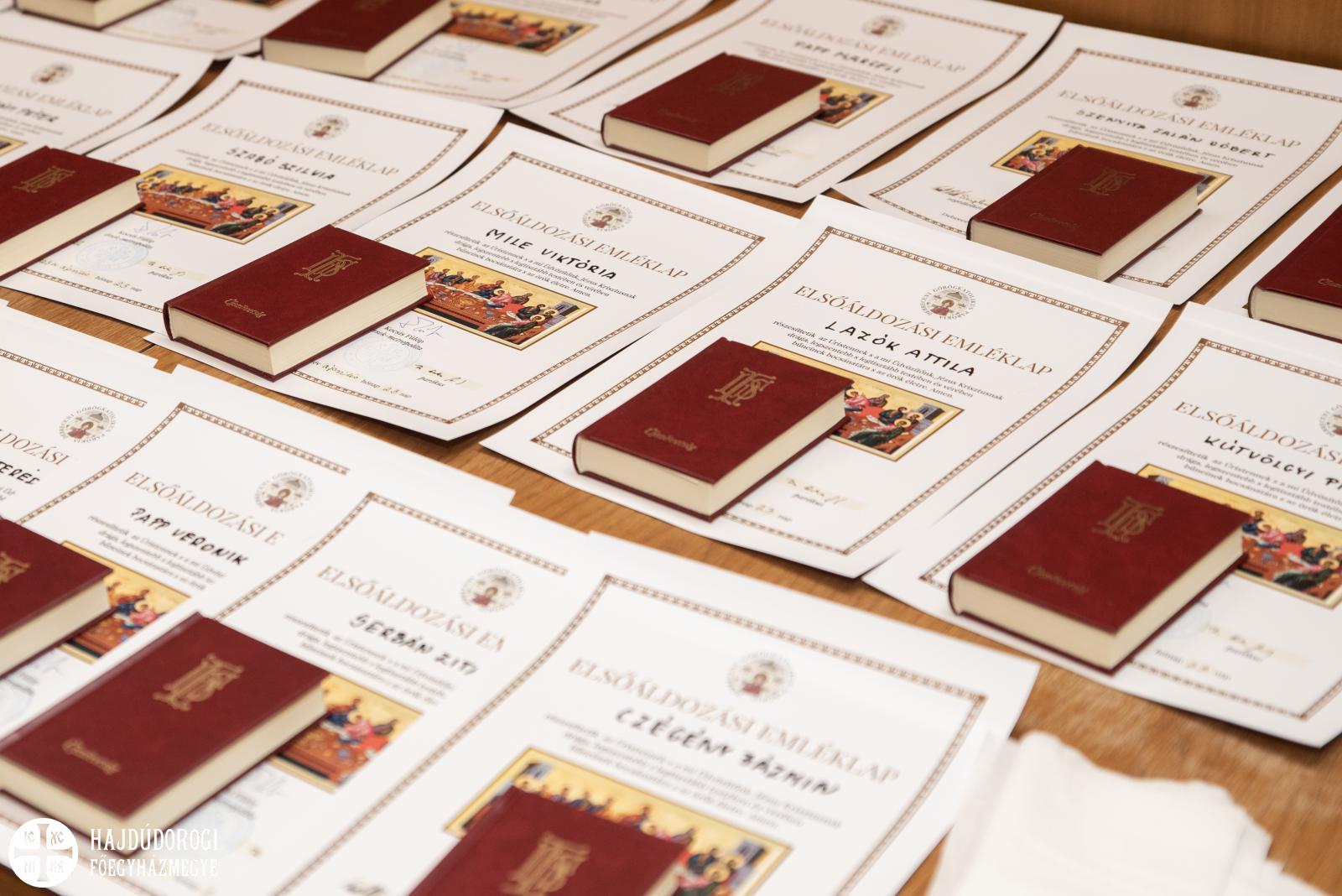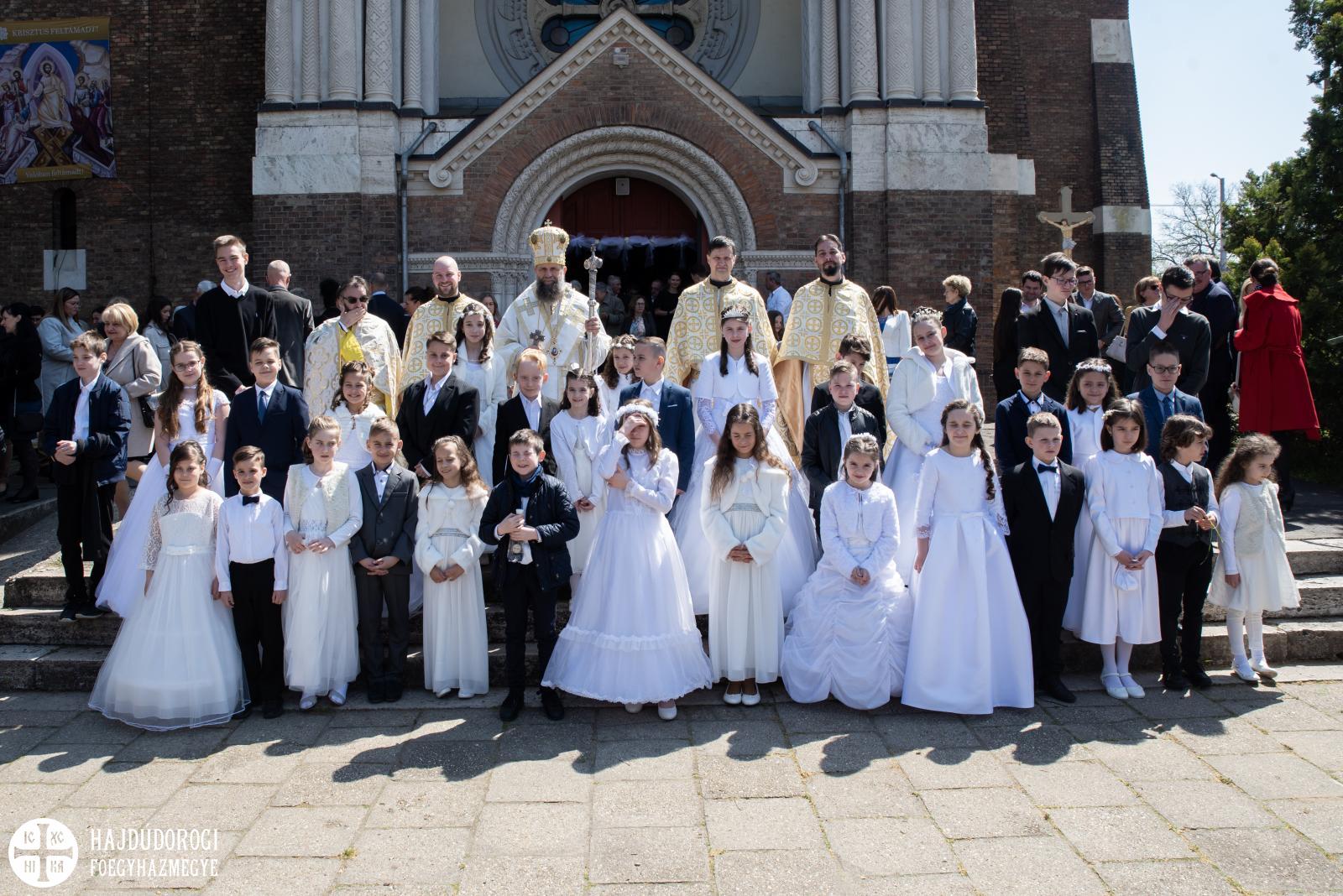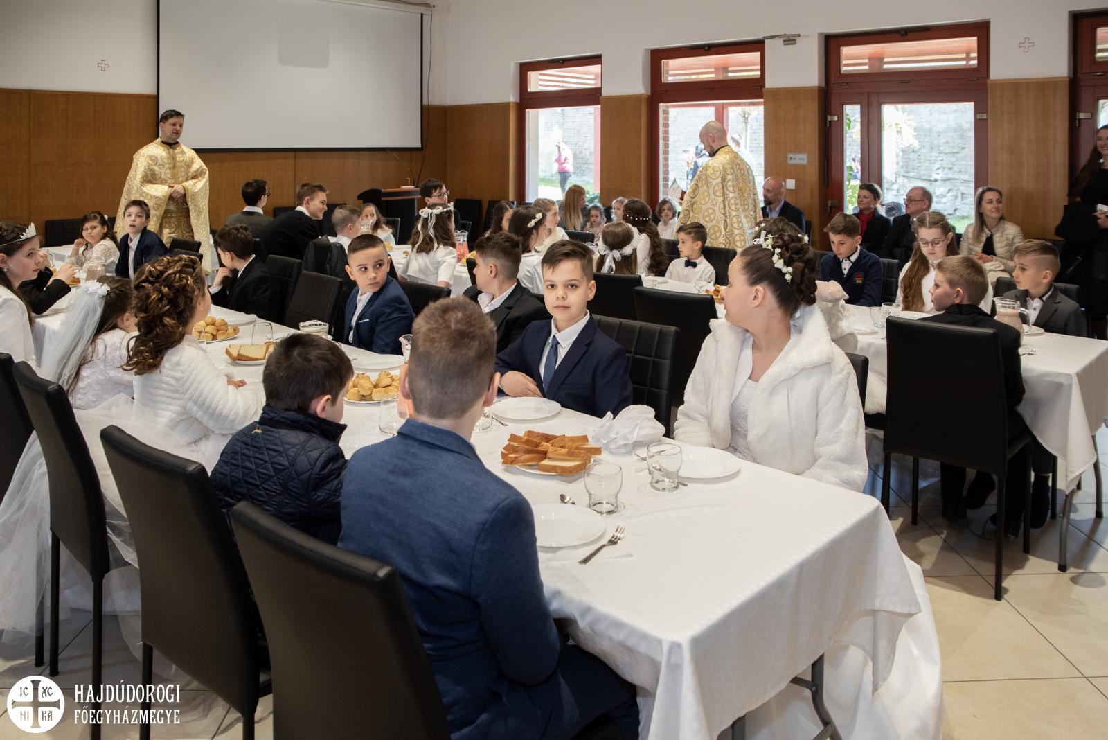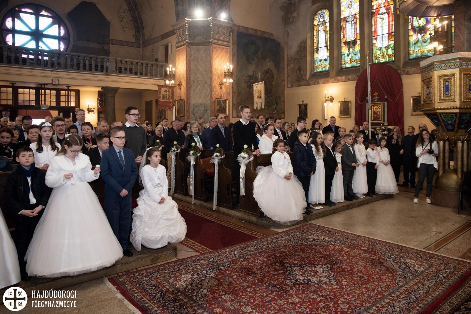 - A testét és vérét most is magunkhoz vehetjük, mert az az utolsó vacsora az az asztal, itt van velünk. Itt van a templomban, az oltáron, ami minden templomban egyfajta „terem”, „asztal”, ahol Jézus megterített az utolsó vacsorára. Az oltáron lévő kenyér és bor az Eucharisztia, Jézus teste és vére, ami bizonyítja, hogy bár a sír üres, de Jézus velünk van, a világ végezetéig – magyarázta az elsőáldozóknak a főpásztor.