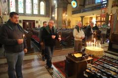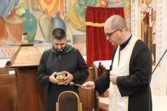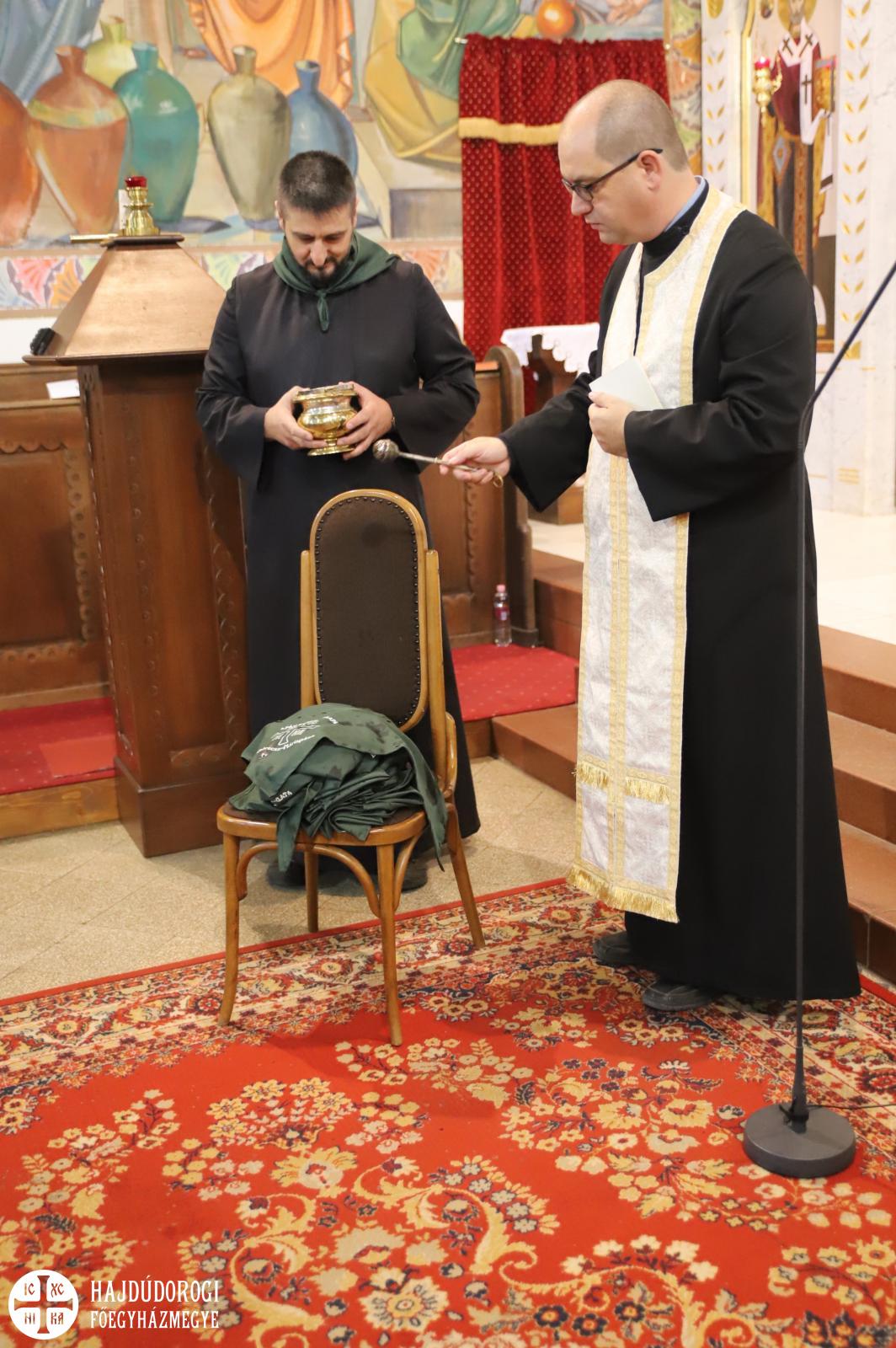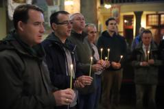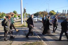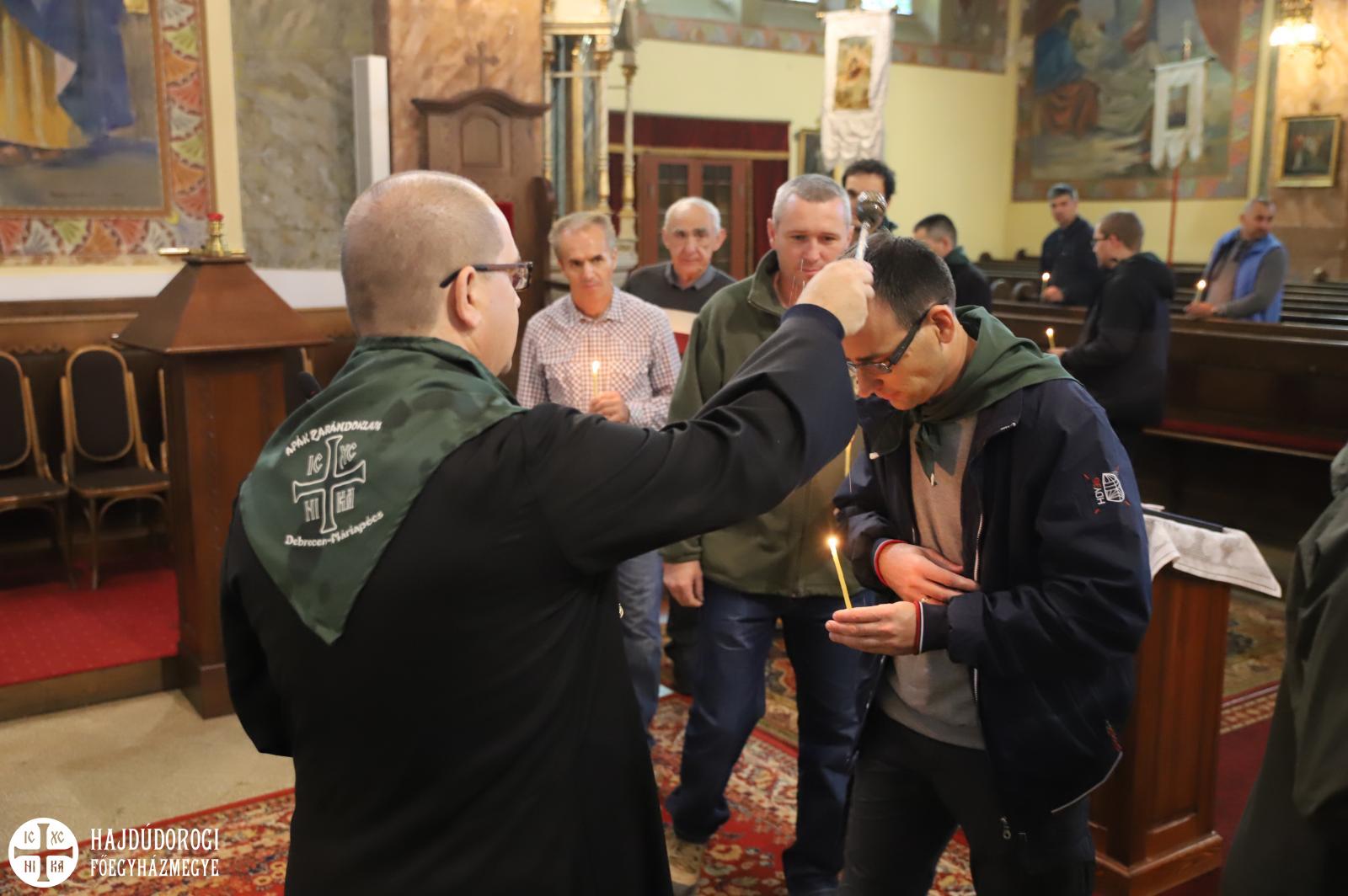 Az indulás előtt közös imádságra gyűltek össze a templomban, ahol Seszták István főhelynök megáldotta a zarándokokat, és a külön erre az alkalomra készített kendőket. A főhelynök atya útravalóként azt adta az édesapáknak, hogy mélyüljenek el hitükben, egyetlen gondolatot vigyenek magukkal, amit út közben le tudnak tisztítani, és megtalálják ezáltal a lényeget. Seszták István hangsúlyozta, a zarándoklat mindig egyéni, ugyanakkor fontos, hogy segítsük egymást, megosszuk a másikkal életünk egy-egy mozzanatát.