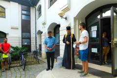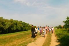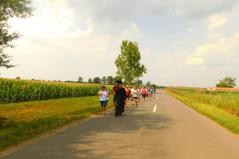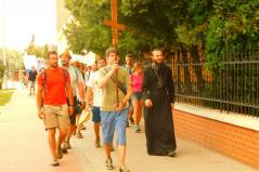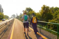 A késő délutáni órákban Nyíregyháza közelében, Vargabokorban megérkezett Obbágy László atya gyümölcsküldeménye, és csatlakozott zarándoklatunkhoz Ábel kormányzó atya, aki bevezetett minket a nyíregyházi székesegyházba. A vecsernyén „a lélek ugyan kész, de a test erőtlen” (Mt 26,41) lelkületével vettünk részt. Az apostoli kormányzó atya elmélkedésében a jövő reménységének nevezte a fiatalokat és hitünk minél mélyebb megélésre buzdított. Másnap reggel a szokott módon, a fáradtság ellenére az utrenyén a fiatalok szép számmal vettek részt, majd Ábel atya áldásával ismét útra keltünk. Következő állomásunkon Oroson, atyai szeretettel várt bennünket Mosolygó Marcell atya, és friss gyümölccsel vendégelte meg a csapatot – Páll Miklós atya meglepetés péksüteményeivel együtt.