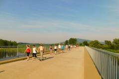 Péntek reggel Gorcsa György atyának megköszönve a szíves fogadtatást, már Atanáz püspök atyával keltünk utunkra, vezetésével dinamikus tempóban délben már Tiszaeszlárra érkeztünk. Bacsó János atya távollétében is segített, hogy Nagy Tibor polgármesterrel együtt nyitott templom ajtó, az iskolában pedig kiadós ebéd várjon minket. Atanáz püspök atya a templomban tartott imaórán „a fél óra csönd” fontosságáról elmélkedett. Hálásan megköszönve a tiszaeszláriak vendégszeretetét folytattuk utunkat Nyíregyháza felé. Püspök atyának a csönd témakörét több oldalról megközelítő velős gondolatai, olyan mértékben megérintették fiataljainkat, hogy az erdőbe beérve egy szakaszon a csend kézzelfoghatóvá vált és csak a természet hangjai hallatszottak. A délután ránk váró táv még embert próbálónak ígérkezett, így egy rövid szakaszon egy traktor utánfutóval segített minket, ami folytán a mocsaras részeken is szárazon kelhettünk át.