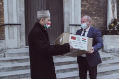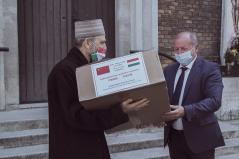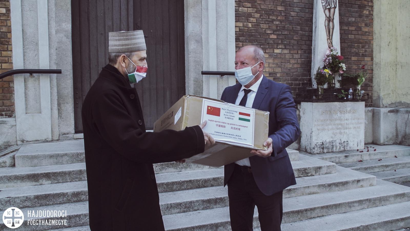 Az átadás Budapesten, a Rózsák terén történt, ahová a Szent Efrém férfikar által énekelt Isteni Szent Liturgiára érkezett Fülöp metropolita atya. A kapott 1000 db védőmaszkot összesen négy felé osztották szét. Mind a három egyházmegye kapott belőle, valamint a metropóliai szociális hálózat, a közös Szent Lukács Szeretetszolgálat intézményei.