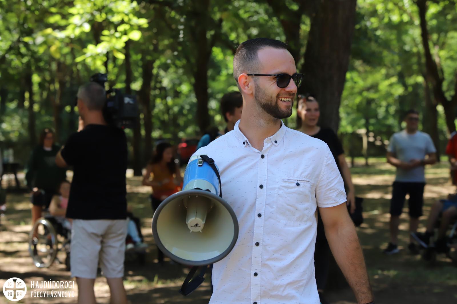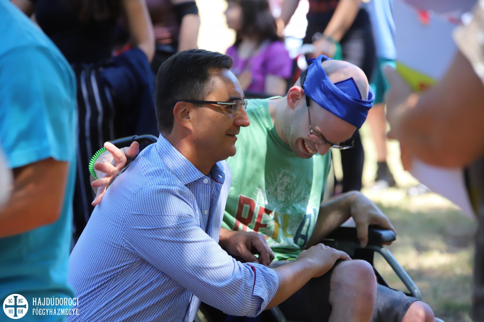 „A programok kiválasztásánál a legfontosabb szempont az volt, hogy lehetőleg ne borítsuk fel a fogyatékkal élő gyerekek sajátos rendszerét, akár a napirend, akár az őket érő ingerek vonatkozásában.” – mesélte a kispap és hozzátette tűzoltó-bemutató, könnyűzenei koncert, focizsonglőr, néptáncest, tűzzsonglőrök, és tehetségkutató vetélkedő egyaránt szerepel a programok között. Kedden éppen rendőrkutyás bemutató volt soron. A fiatalok, ki-ki a maga módján, amennyire szellemi-fizikai adottságaik lehetővé tették, hangos jókedvvel kapcsolódtak be a mulatságba, de volt olyan is, aki segítője kezét fogva passzív szemlélőként vett csak részt a matinén.