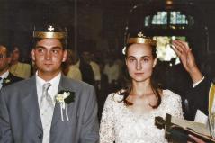 Tele volt élettel az ottani közeg, így aztán szép lassan beépültünk a Rózsák terei plébánia életébe, elkezdtünk a sokgyerekes görög papok családjába besegíteni. Amikor a későbbi férjemmel megismerkedtünk, én már sok éve görög Liturgiára jártam, a férjem viszont tősgyökeres római katolikus család sarja, olyannyira, hogy a bátyja római katolikus pap. Szerencsére sokszor jött velem a görögkatolikus szertartásokra, mert tetszettek neki, aztán amikor egyszer meglátta, hogy milyen egy görögkatolikus esküvő, azt mondta, a miénk is ilyen legyen. Ehhez azonban szükséges volt, hogy legalább az egyikünk görögkatolikus legyen.