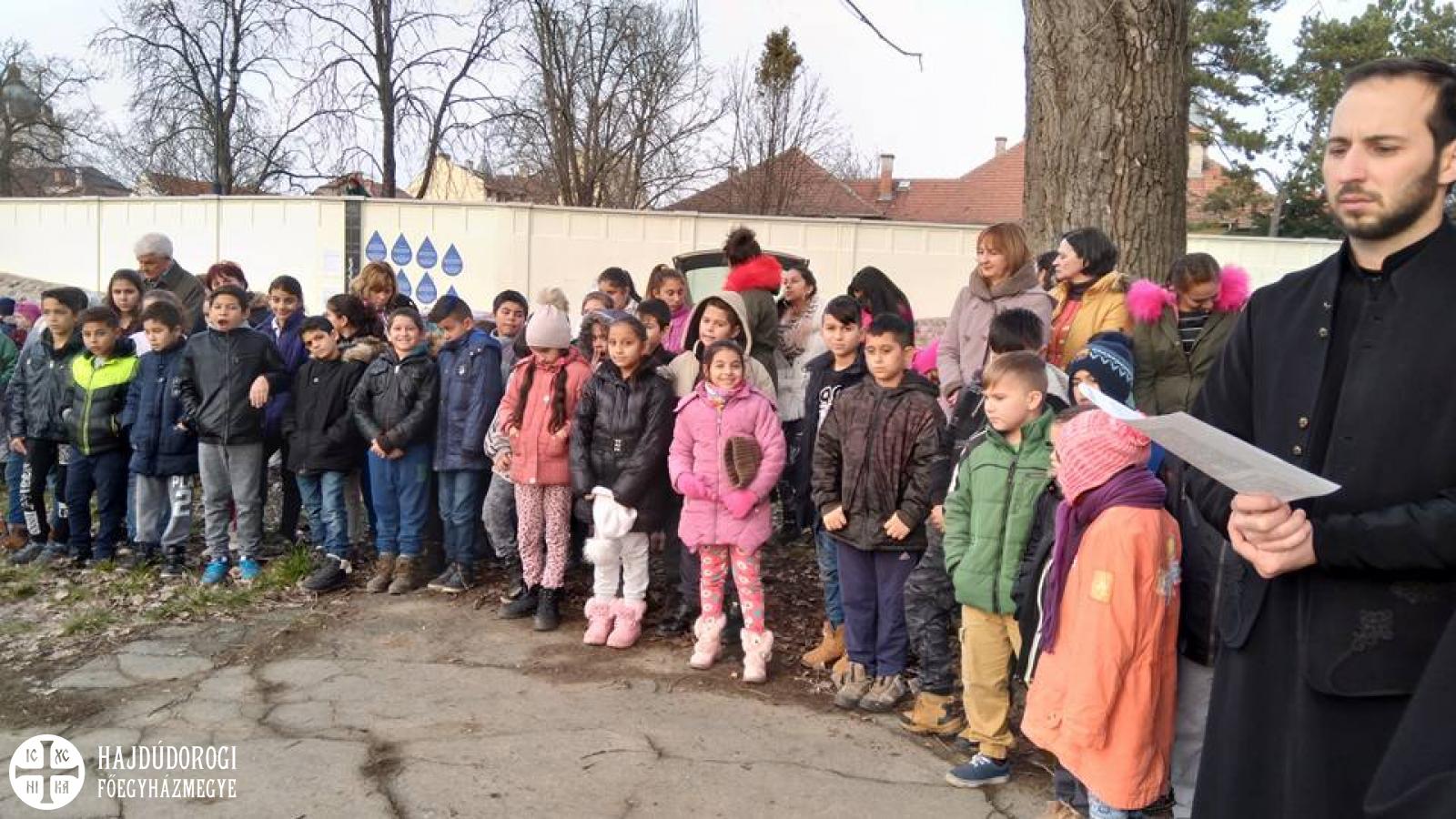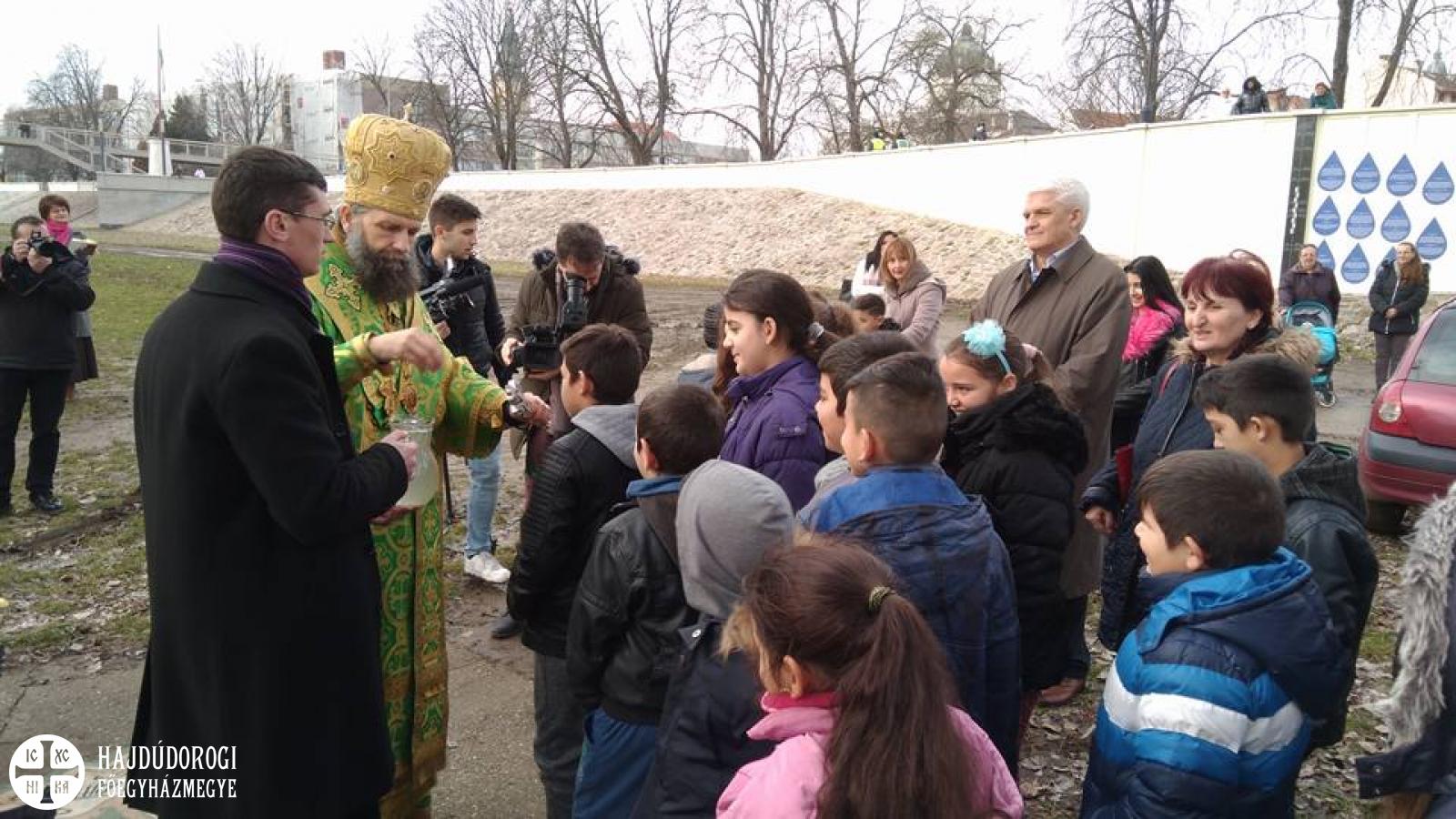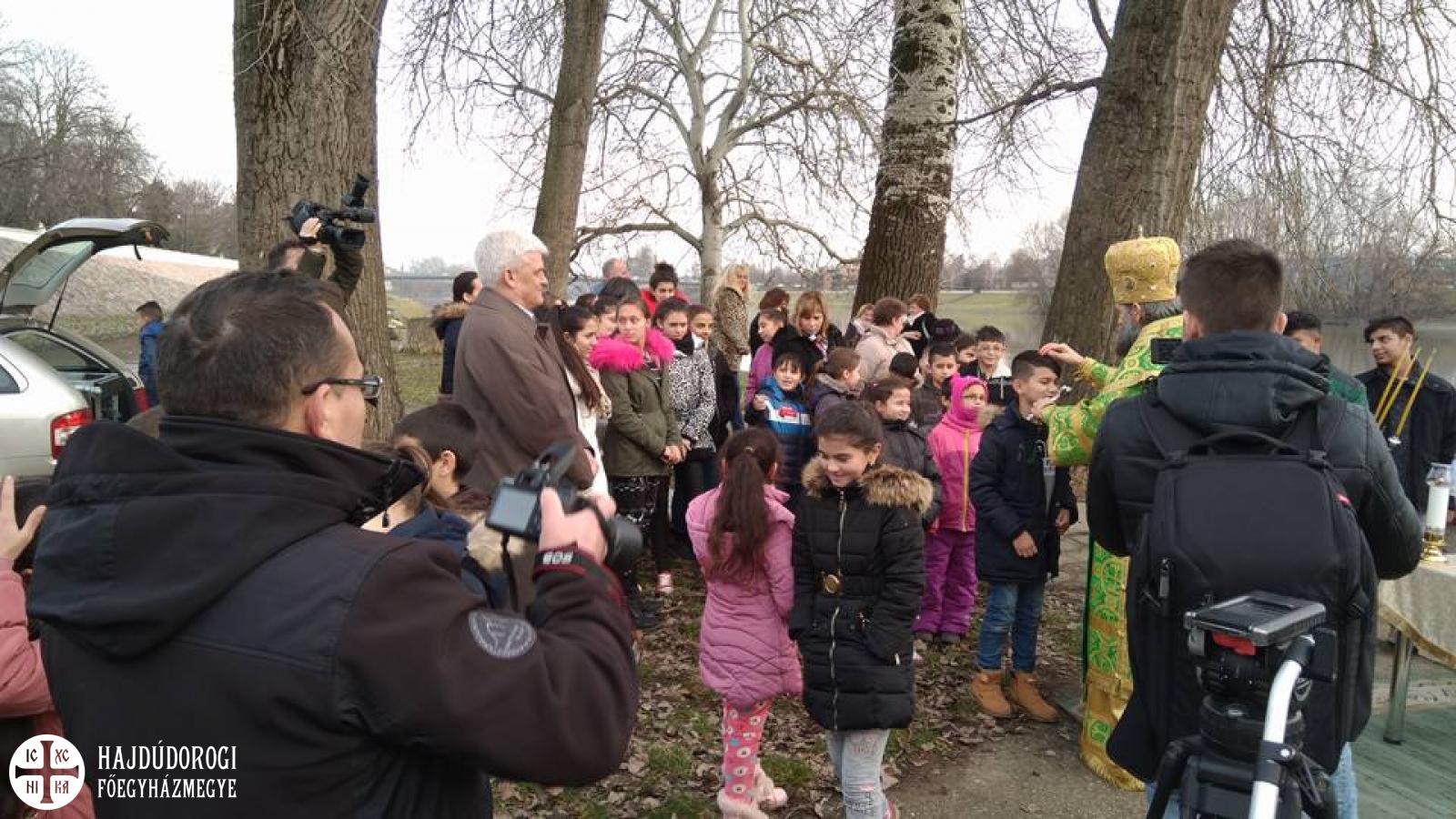 A szertartáson részt vettek a Szent Tamás Görög Katolikus Általános Iskola valamint a Tiszaparti Római Katolikus Általános Iskola és Gimnázium diákjai is. Vízkereszt a vizek szentelésének ünnepe. Tudják ezt a Szent Tamás Görögkatolikus Általános Iskola diákjai is, akik tanáraikkal készültek az egyházi ünnepre. Vízkereszt egyúttal fontos határnap is. Véget érnek a téli napfordulóhoz kapcsolódó szokások-ünnepek, és elkezdődik a télbúcsúztató-tavaszváró időszak – a húsvétot megelőző negyvennapos böjt kezdetéig, hamvazószerdáig tartó farsang. Ezen a napon korábban az élővizeket is megszentelték, a görögkatolikus egyház ezt a hagyományt 2011-ben élesztette fel a Szolnokon. A vízkereszt üzenete, hogy újra visszataláljunk a tisztasághoz. Nem a magunk erejéből, mivel önmagunkat nem tudjuk tisztára mosni, önmagunkat nem tudjuk megváltani. Egyedül Isten képes visszaadni a tisztaságot - mondta Kocsis Fülöp metropolita.