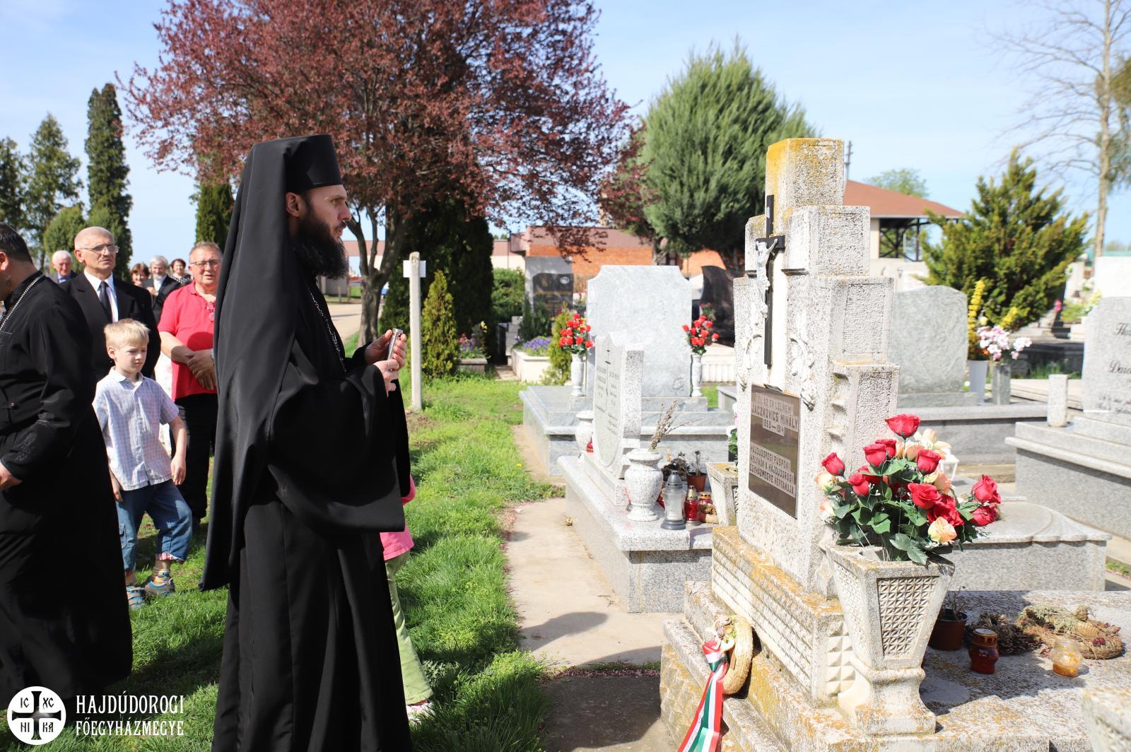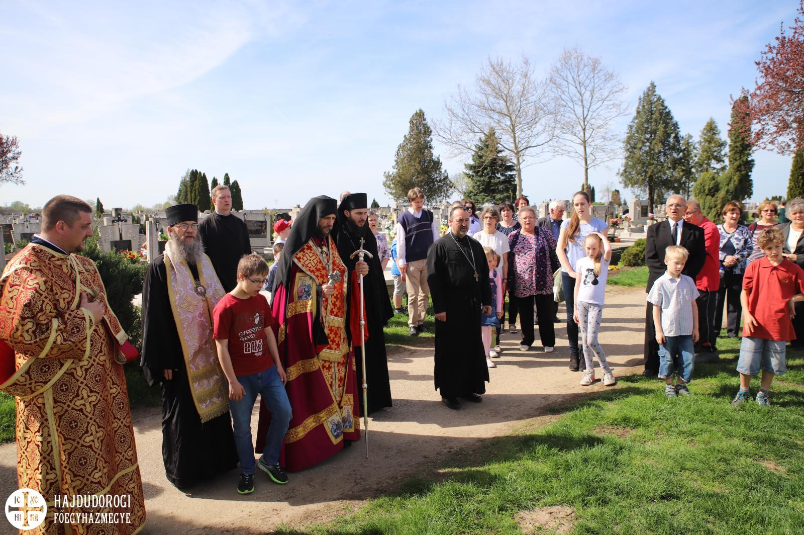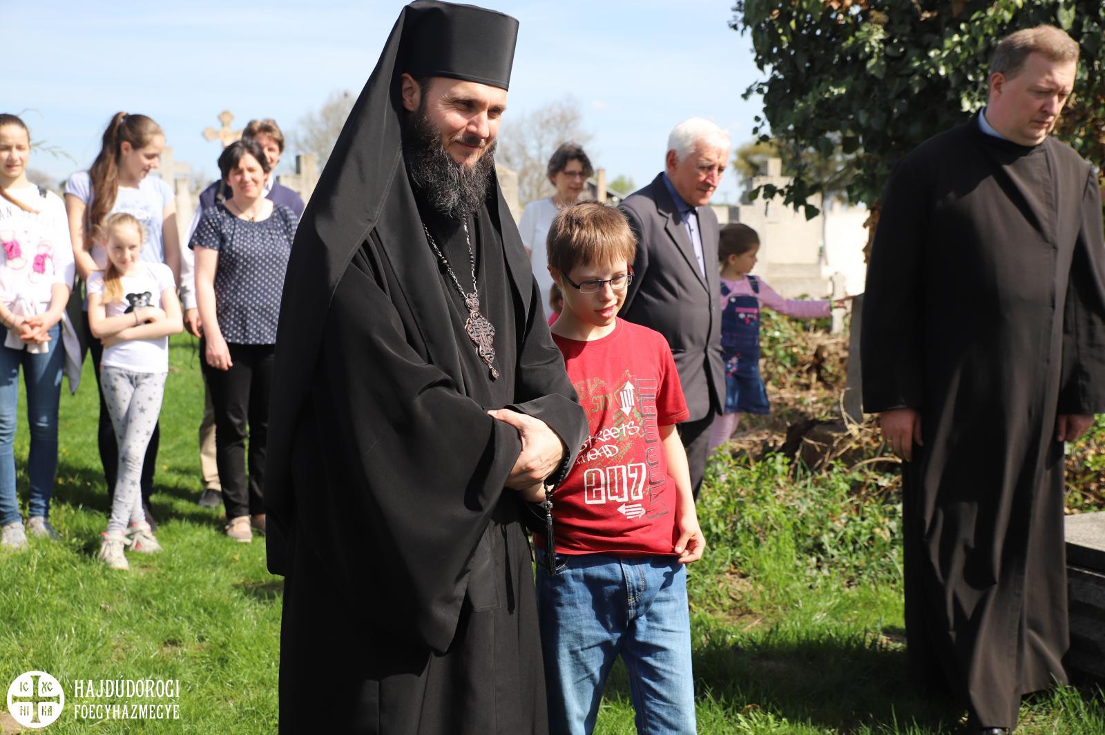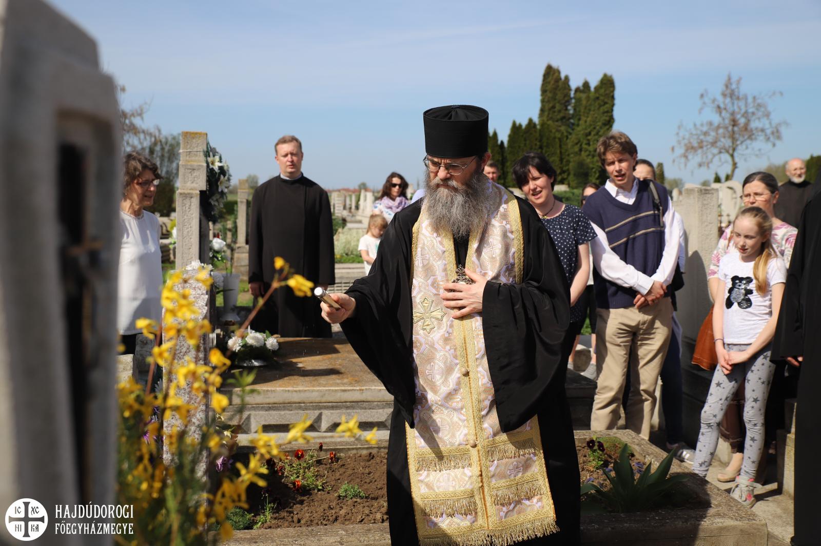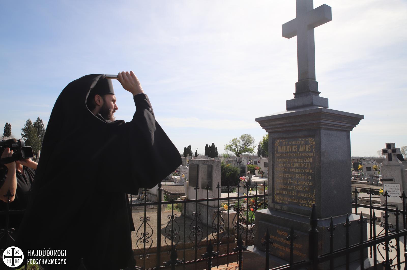 Ebéd után lehetőség volt kimenni a temetőbe, ahol szintén megemlékeztek a történelmi nagygyűlés szervezőiről: elsősorban Farkas Lajosról, valamint a Hajdúdorogon szolgáló helynökökről: Danilovics Jánosról, Lengyel Endréről, Jaczkovics Mihályról. Az ő sírjaikat a pannachida után meg is koszorúzták a hierarchák. A nap húsvétköri vecsernyével zárult a székesegyházban.