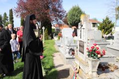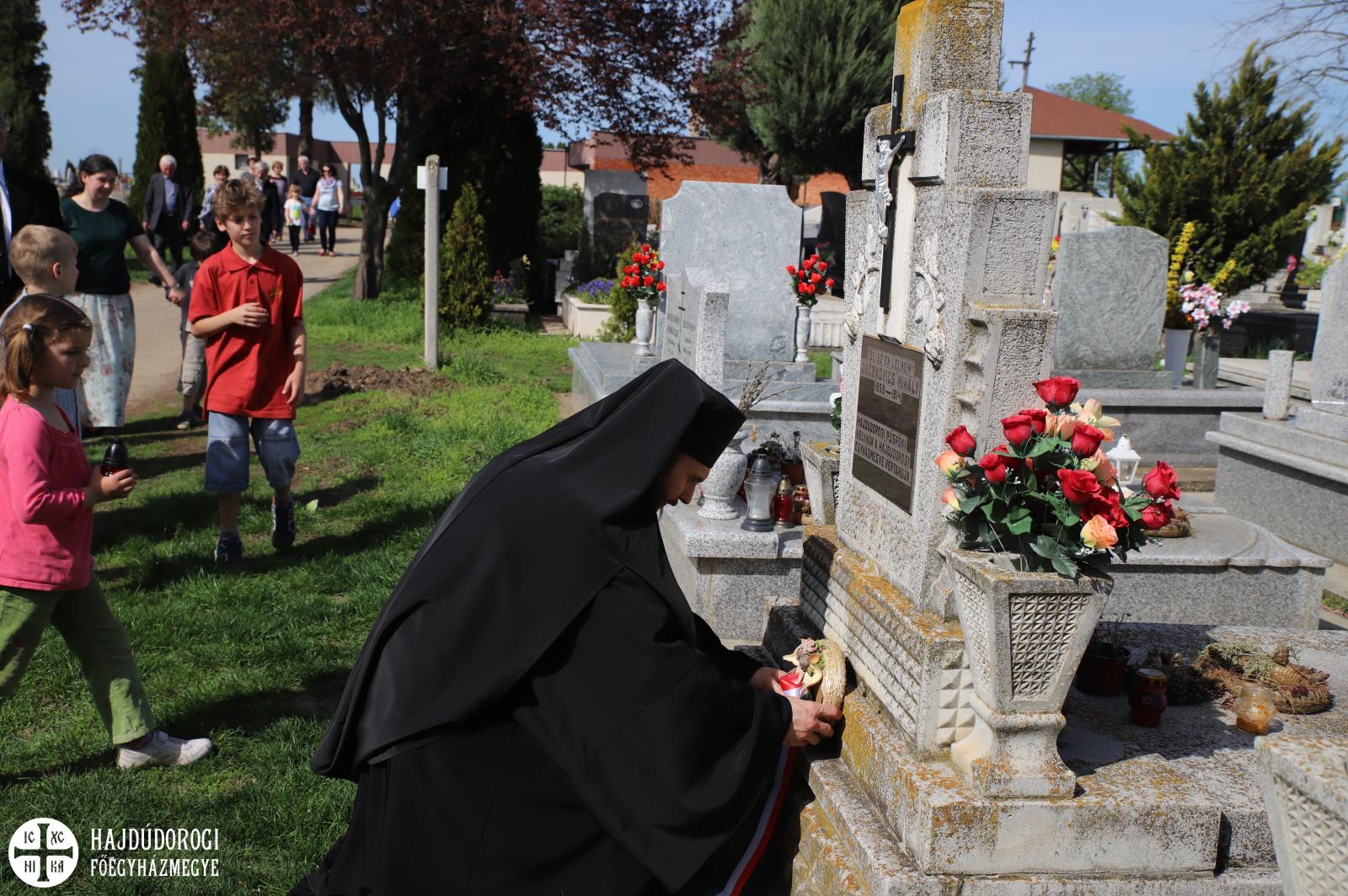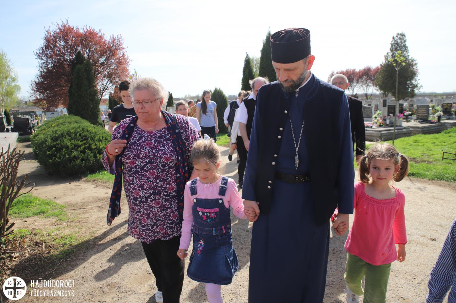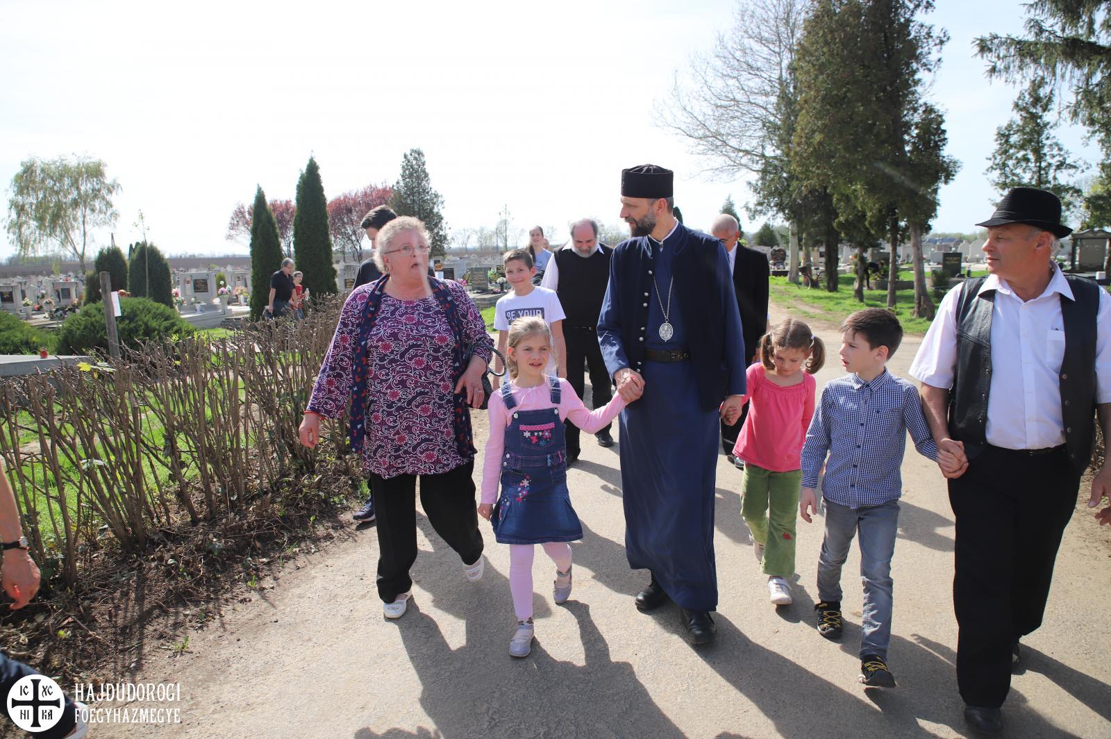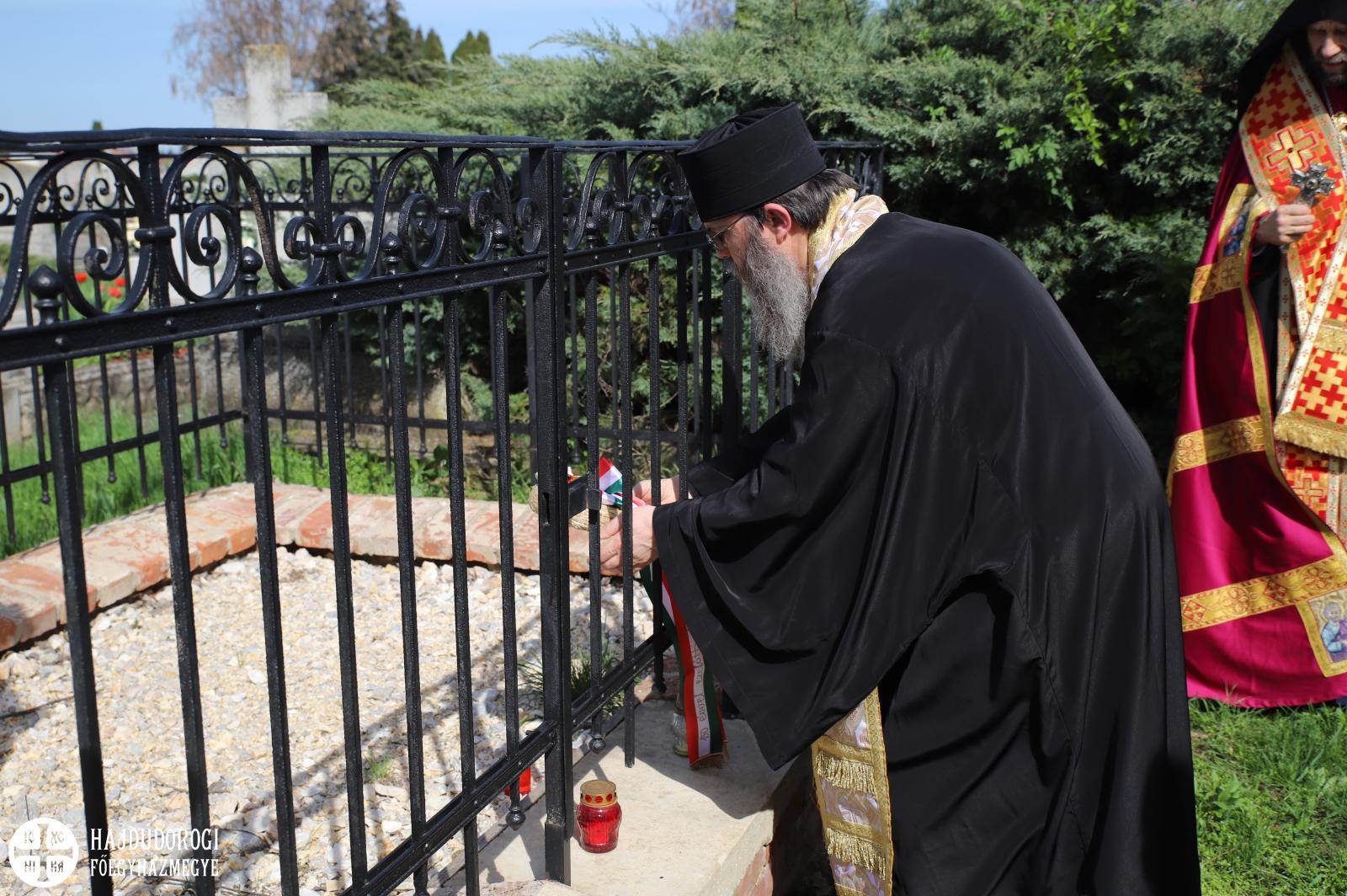 Ebéd után lehetőség volt kimenni a temetőbe, ahol szintén megemlékeztek a történelmi nagygyűlés szervezőiről: elsősorban Farkas Lajosról, valamint a Hajdúdorogon szolgáló helynökökről: Danilovics Jánosról, Lengyel Endréről, Jaczkovics Mihályról. Az ő sírjaikat a pannachida után meg is koszorúzták a hierarchák. A nap húsvétköri vecsernyével zárult a székesegyházban.