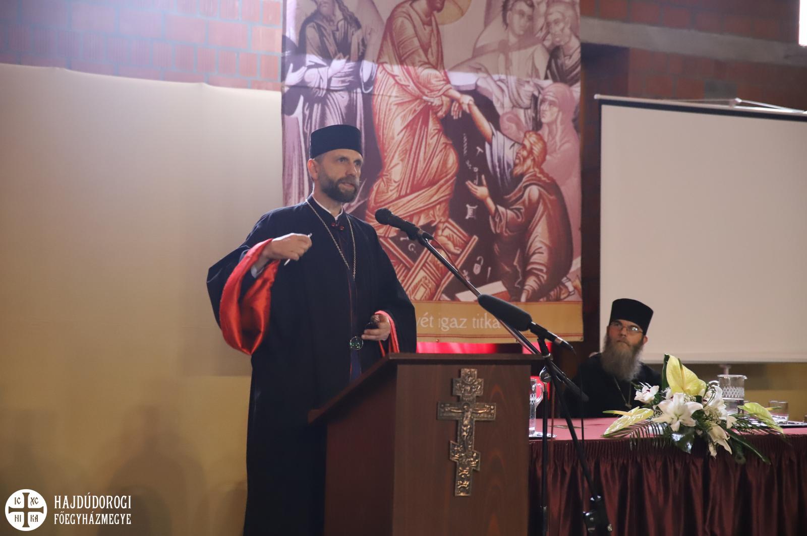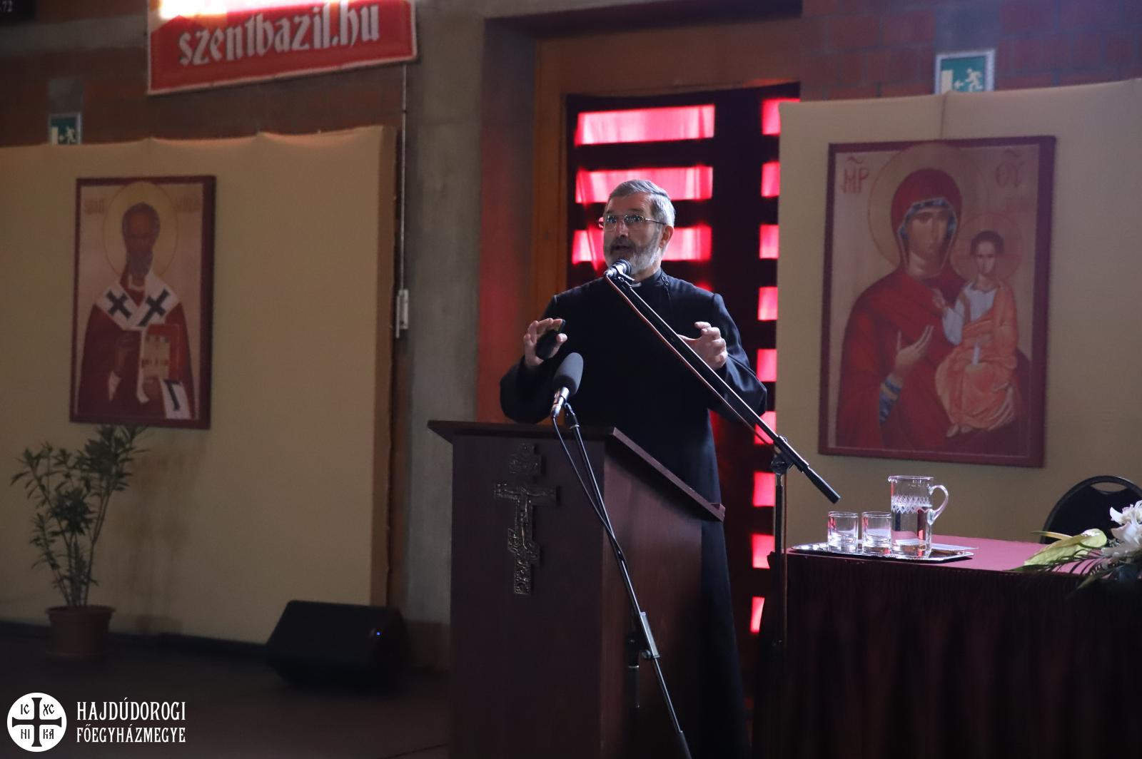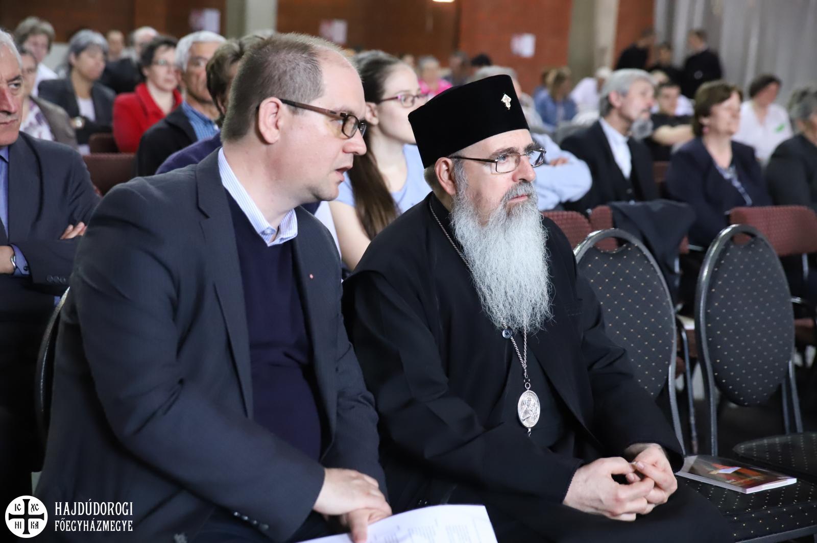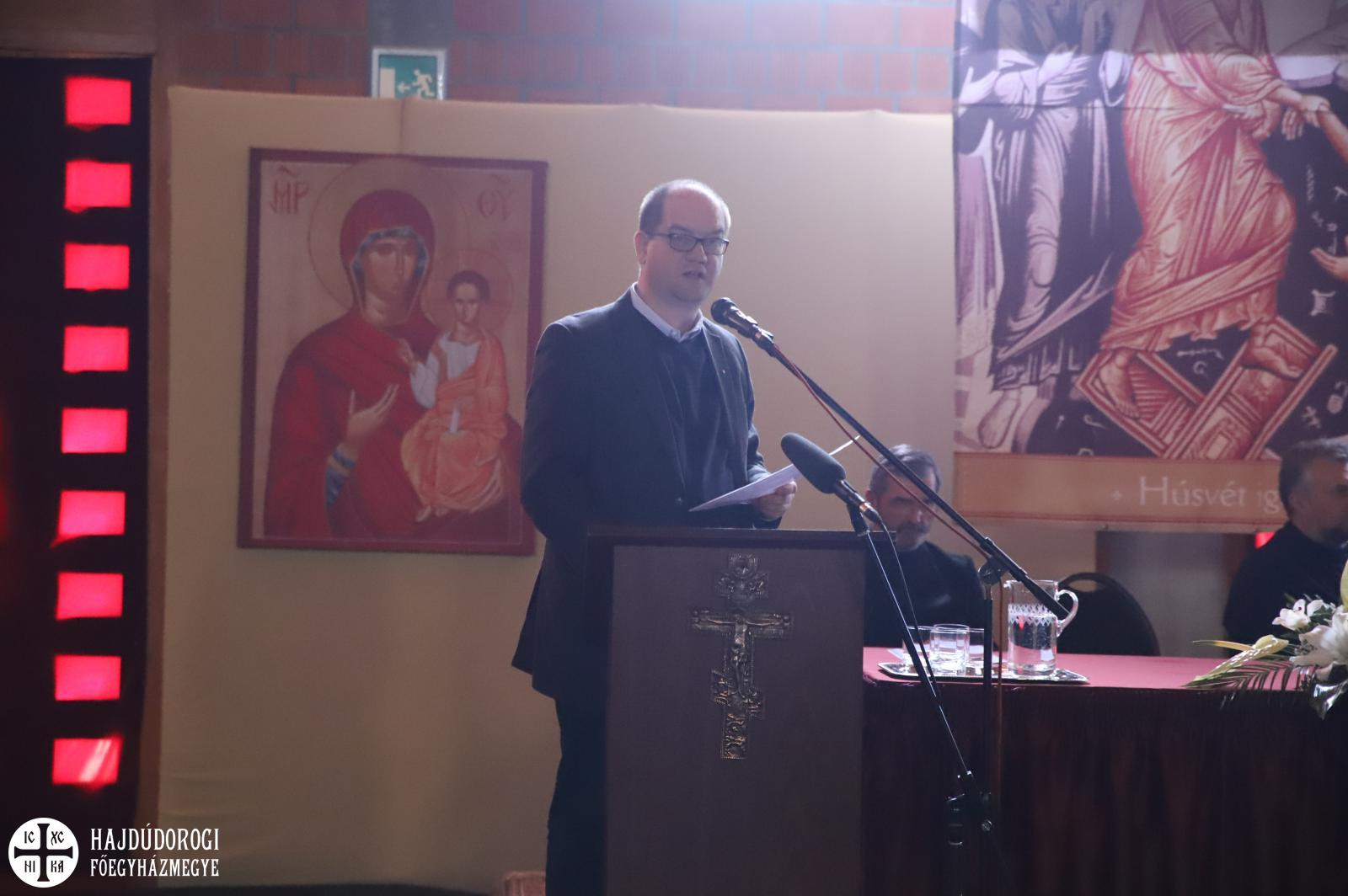 Az előadások sorát a három egyházmegye, három helynöke folytatta. Polgári László nyíregyházi helynök felidézte, hogy a rendszerváltás óta napjainkig 45 egyházközség jött létre és 37 templom épült meg, majd időrendben fel is sorolta, hol és mikor valósultak meg ezek a fontos fejlesztések. Majd Seszták István atya, a Debreceni Helynökség vezetője ismertette „a köszönet és a hála szavával” ennek az időszaknak terméseként az intézményhálózat bővülését. „Nagyon hálásak lehetünk, hogy az elődeink reményeit, álmait a Jóisten gondviselése folytán megélhetjük.” – mondta. Emlékeztetett, hogy az első katolikus átvett intézmény a rendszerváltás után éppen a hajdúdorogi általános iskola volt, ezt követően itt a településen, majd Nyíregyházán és Miskolcon jöttek létre azok az intézmények, amik jó alapot jelentettek a terjeszkedéshez. 2009-től egy igazi „oktatási dömping” indult be, azóta szinte megszámlálhatatlan mennyiségű görögkatolikus óvoda és iskola kezdte meg működését. Ennek eredménye, hogy több mint 10 ezer diák tanul ezek között a falak között.