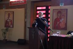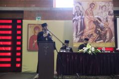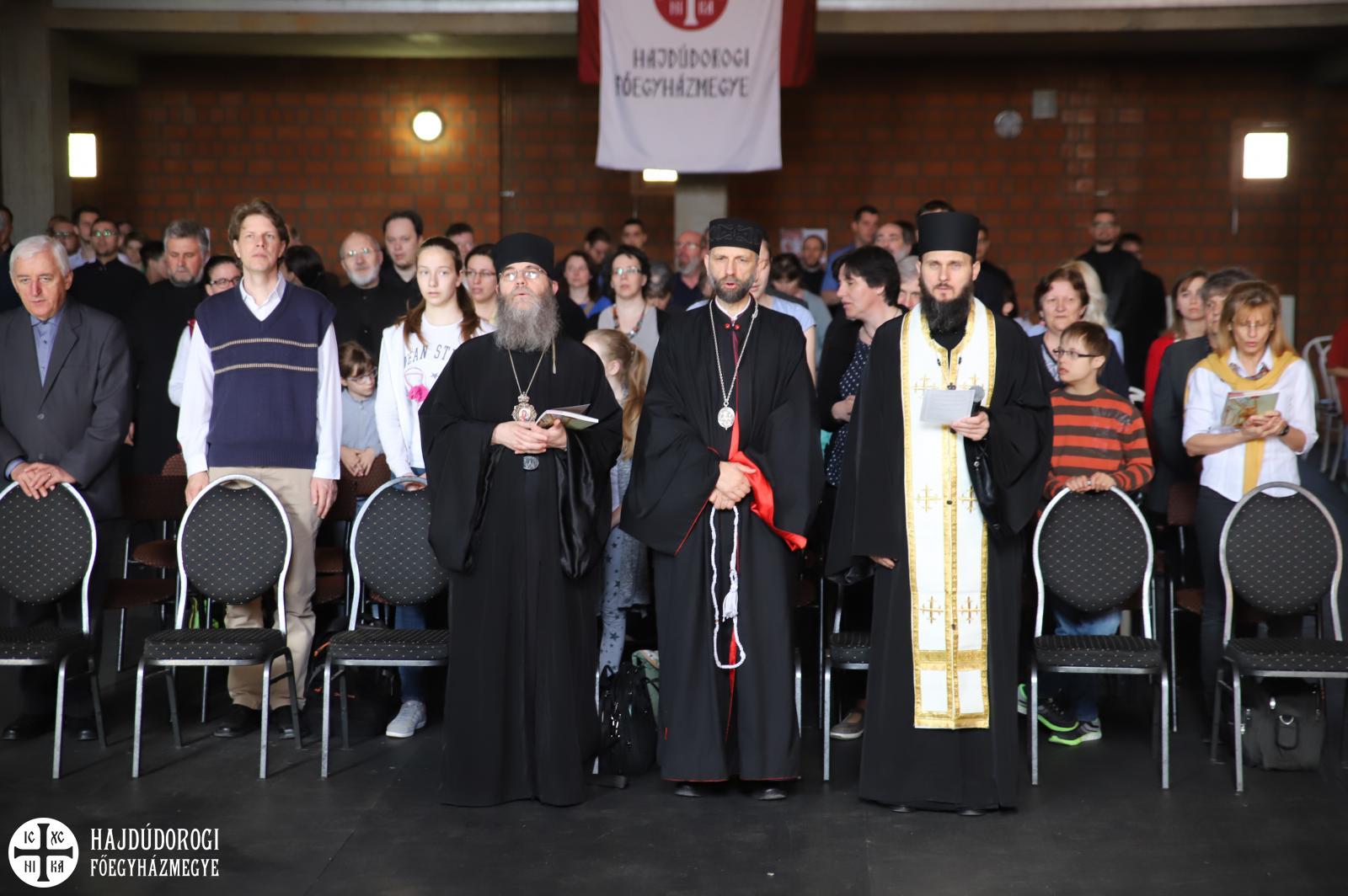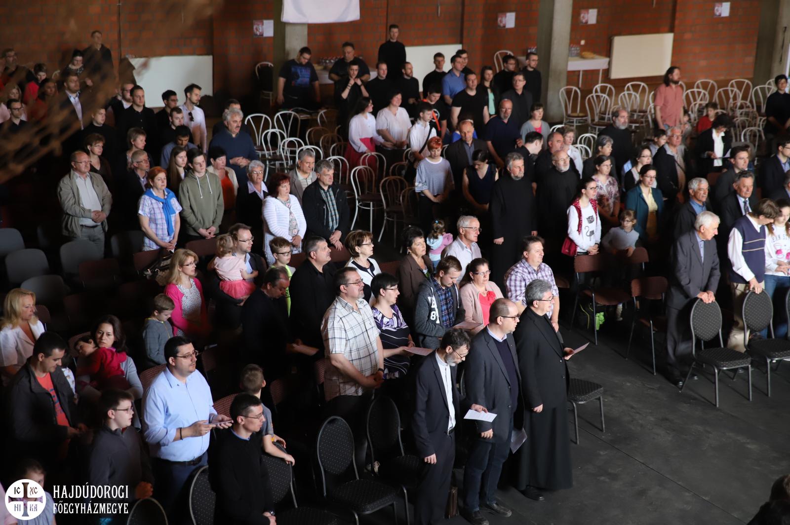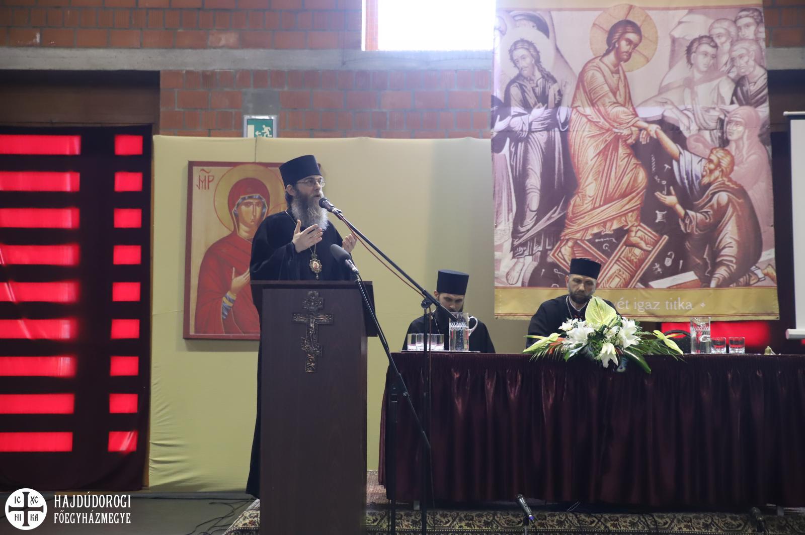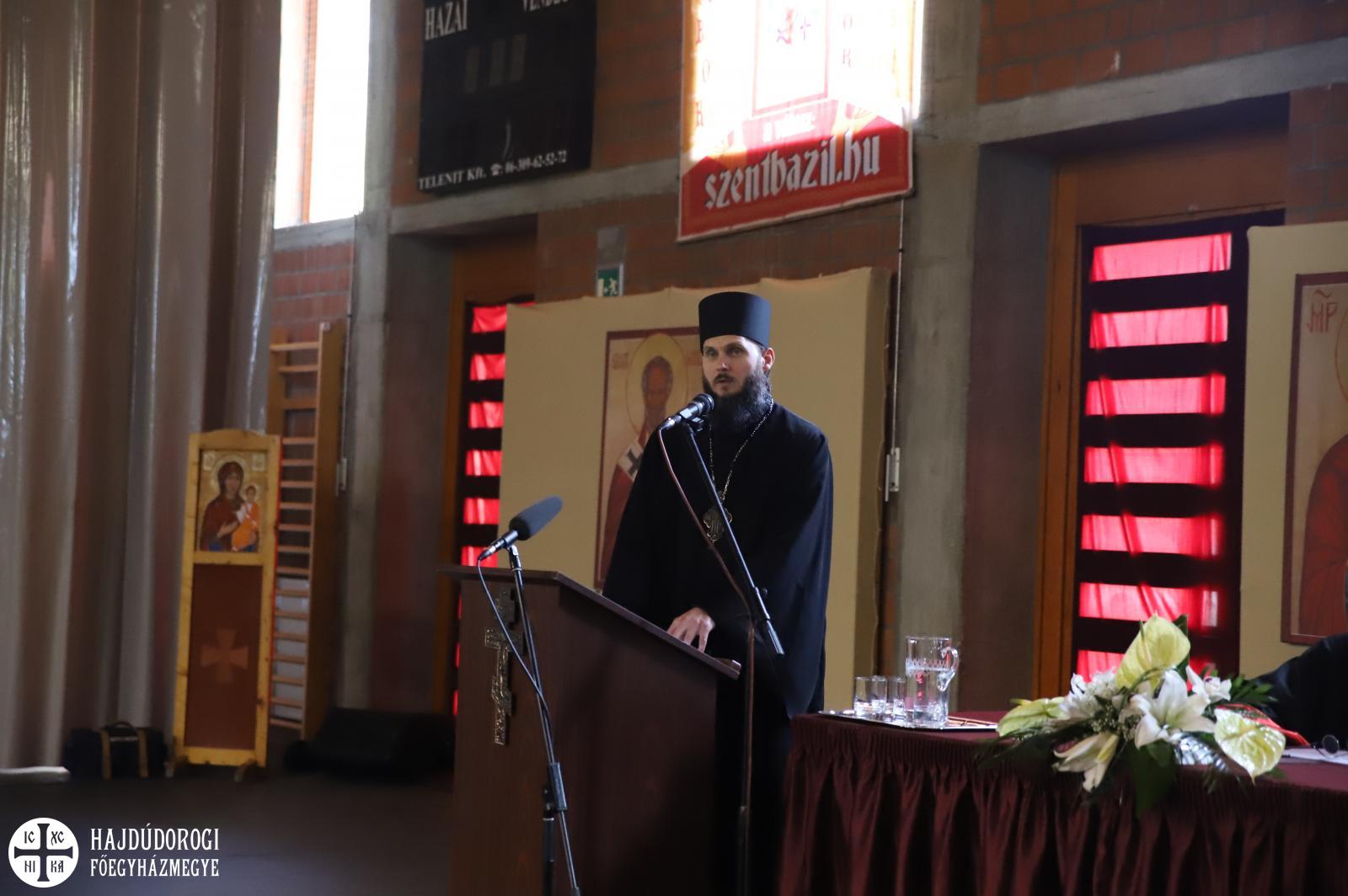 A beszédek sorát Kocsis Fülöp érsek-metropolita atya zárta, aki Véghseő Tamás rektor múltidéző előadásából emelte ki azt, hogy a 150 évvel ezelőtt történteket „örömteli egymásra találásként” értékelték az elődök, és ez azóta is igaz a görögkatolikus egyházra. Jövője pedig ebből az irányból fejlődhet tovább. Fontos tehát, hogy még nagyobb hangsúlyt kapjanak a családokkal közös megmozdulások. Majd arról beszélt, hogy ma már semmi sem állandó, minden felborult, minden talaját vesztette, milliók válták hajléktalanná és a belső migráció miatt is a magyar görögkatolikusok vándorlásba kezdtek. „Mi az, ami támaszt, kapaszkodót nyújthat?” – tette fel a kérdést érsek atya. Ez az állandóság, ami az Isten egyetlenségében gyökerezik és ez azt állandóságot kell tudni továbbadni gyermekeinknek, fiataljainknak. Az egyház fontos feladatának tekinti még a hagyományőrzést és a liturgiára való odafigyelést, mert sokszor foghíjasok a templomok, és abban, hogy ez ne legyen így, nagy felelőssége van a paptestvéreknek.