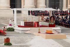 Ferenc pápa vízkereszt előtti napon, január 5-én délelőtt a Szent Péter téren vezette XVI. Benedek emeritus pápa temetését. A szetmisével egybekötött szertartásra a világ minden tájáról 130 bíboros és 400 püspök érkezett az Örök Városba.