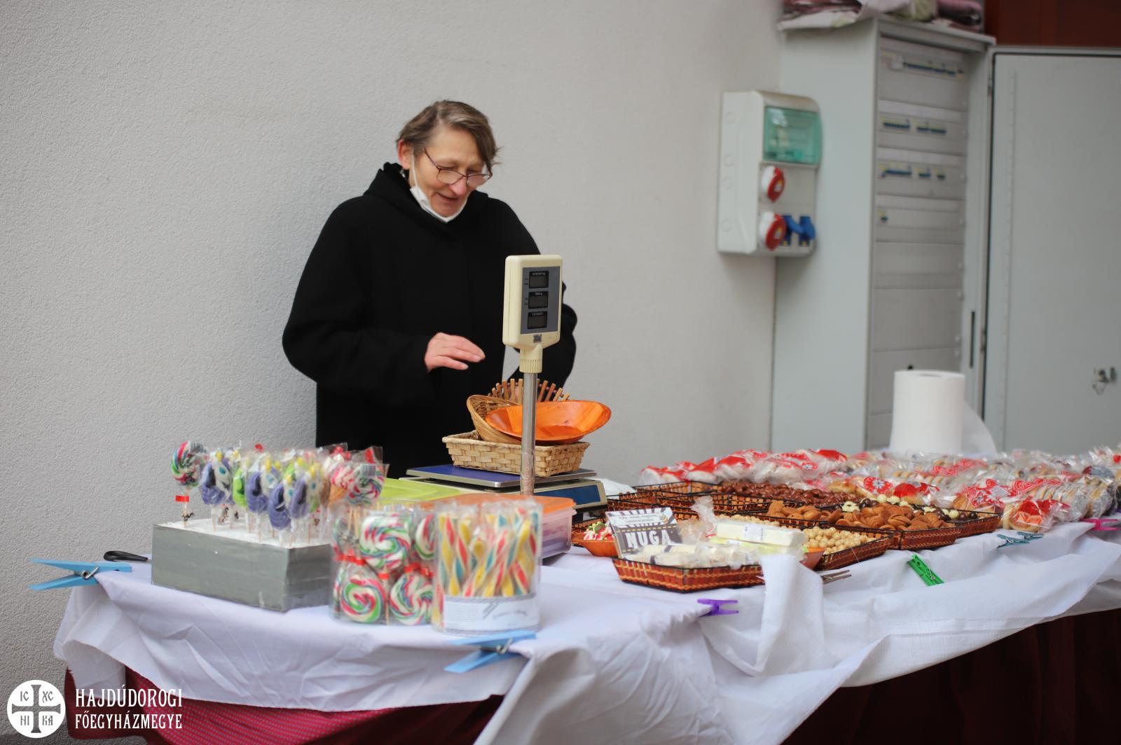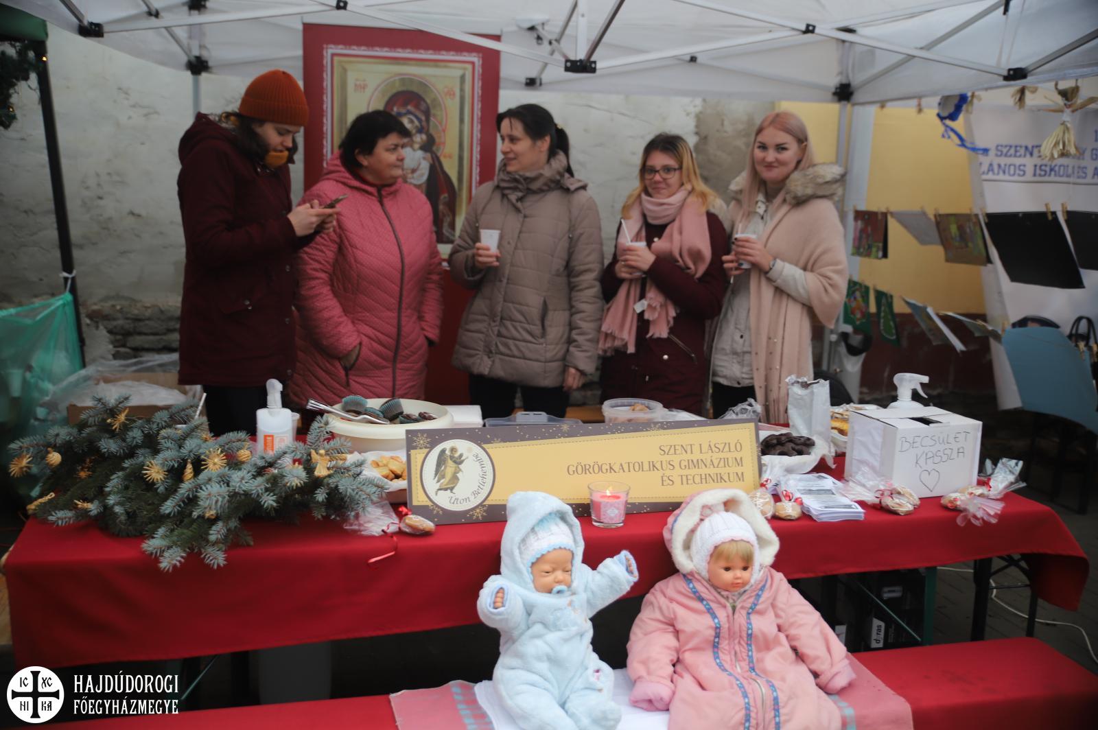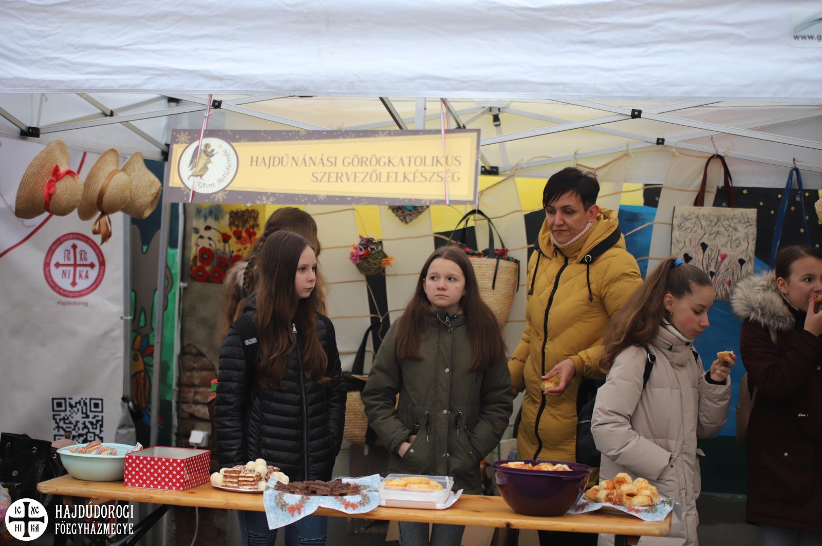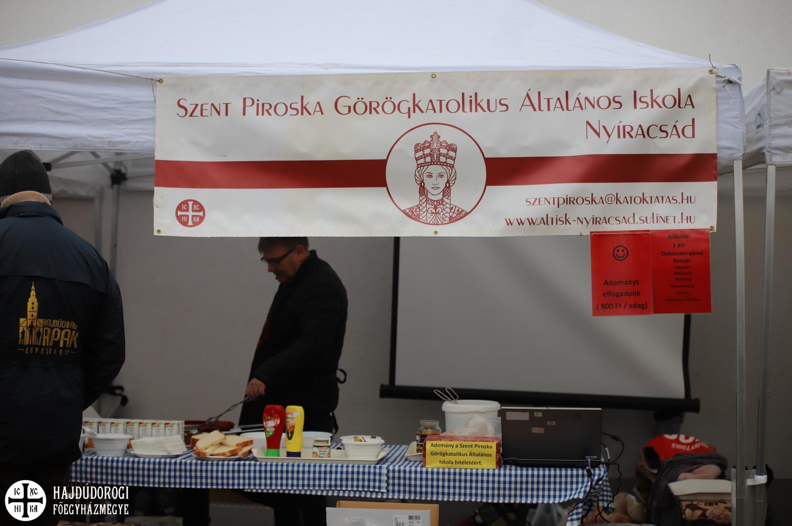 Már délelőtt nagy volt a sürgés-forgás a Látogatóközpont udvarán: a különféle görögkatolikus intézmények lelkesen állították fel standjaikat, hogy minél több mindenkit vendégül láthassanak. Ki frissen sült lángossal, gofrival, palacsintával, kemencében sült pizzaval, birkapörkölttel, ki pedig teával, forralt borral kedveskedett az ide betérőknek.