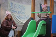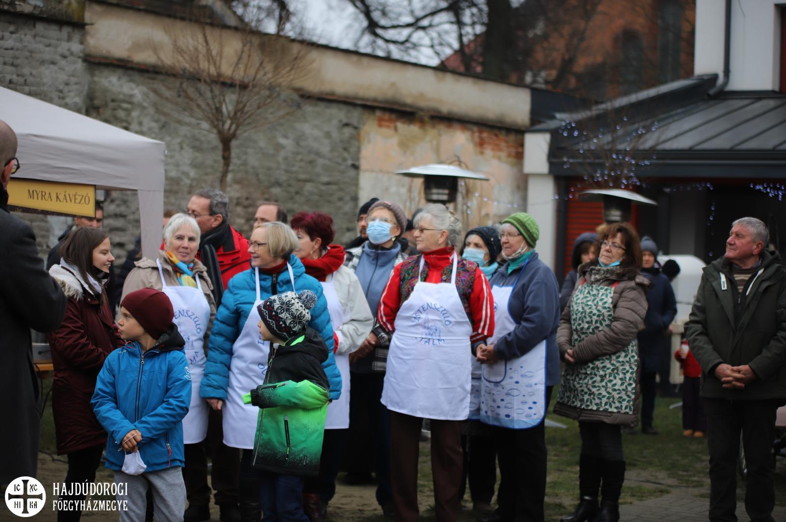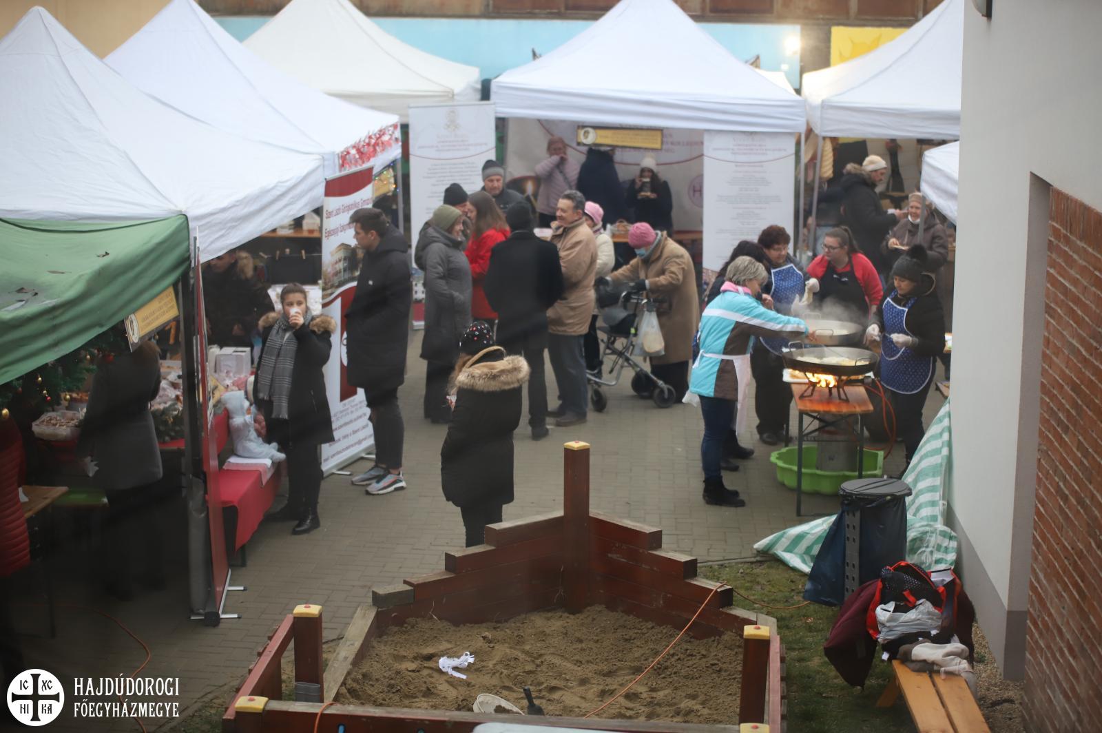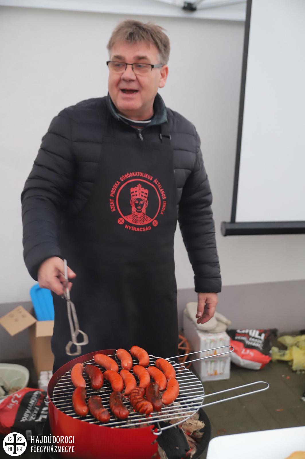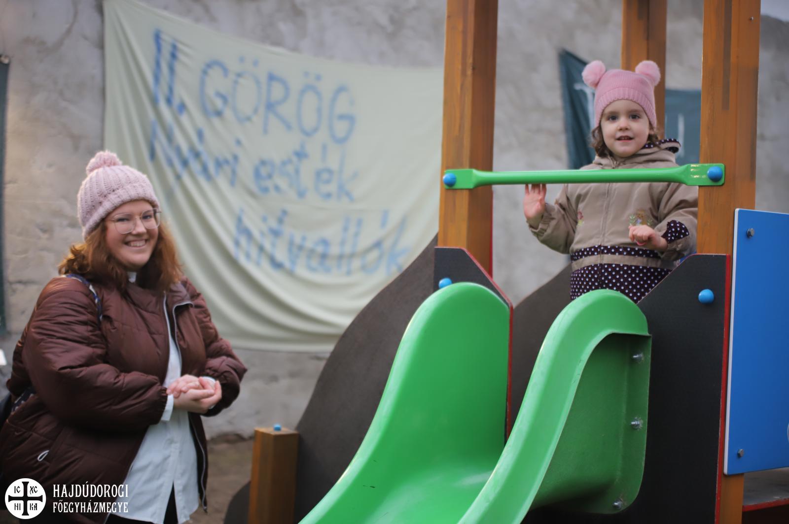 Már délelőtt nagy volt a sürgés-forgás a Látogatóközpont udvarán: a különféle görögkatolikus intézmények lelkesen állították fel standjaikat, hogy minél több mindenkit vendégül láthassanak. Ki frissen sült lángossal, gofrival, palacsintával, kemencében sült pizzaval, birkapörkölttel, ki pedig teával, forralt borral kedveskedett az ide betérőknek.