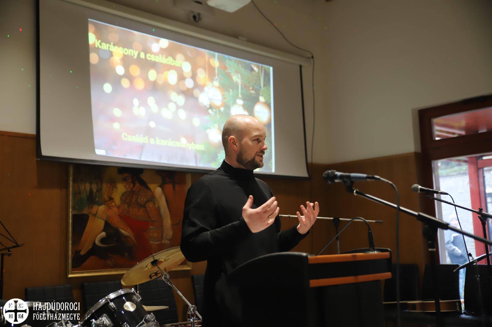 Elsőként Szaplonczay Márk segédlelkész atya beszélt arról, hogyan is kellene megélnie a családoknak karácsony ünnepét.