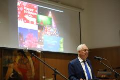A hasznos gondolatok után egy kis szórakozással folytatódott a karácsonyváró nap: a Szent László Gimnázium tanáraiból álló zenekar, a Dienes Band fokozta a jó hangulatot, majd egy újabb érdekes előadás következett. A Debreceni Egyetem oktatási rektorhelyettese, néprajzkutatója Bartha Elek mesélt a karácsony eredetéről, az ünnephez kapcsolódó népszokásokról.