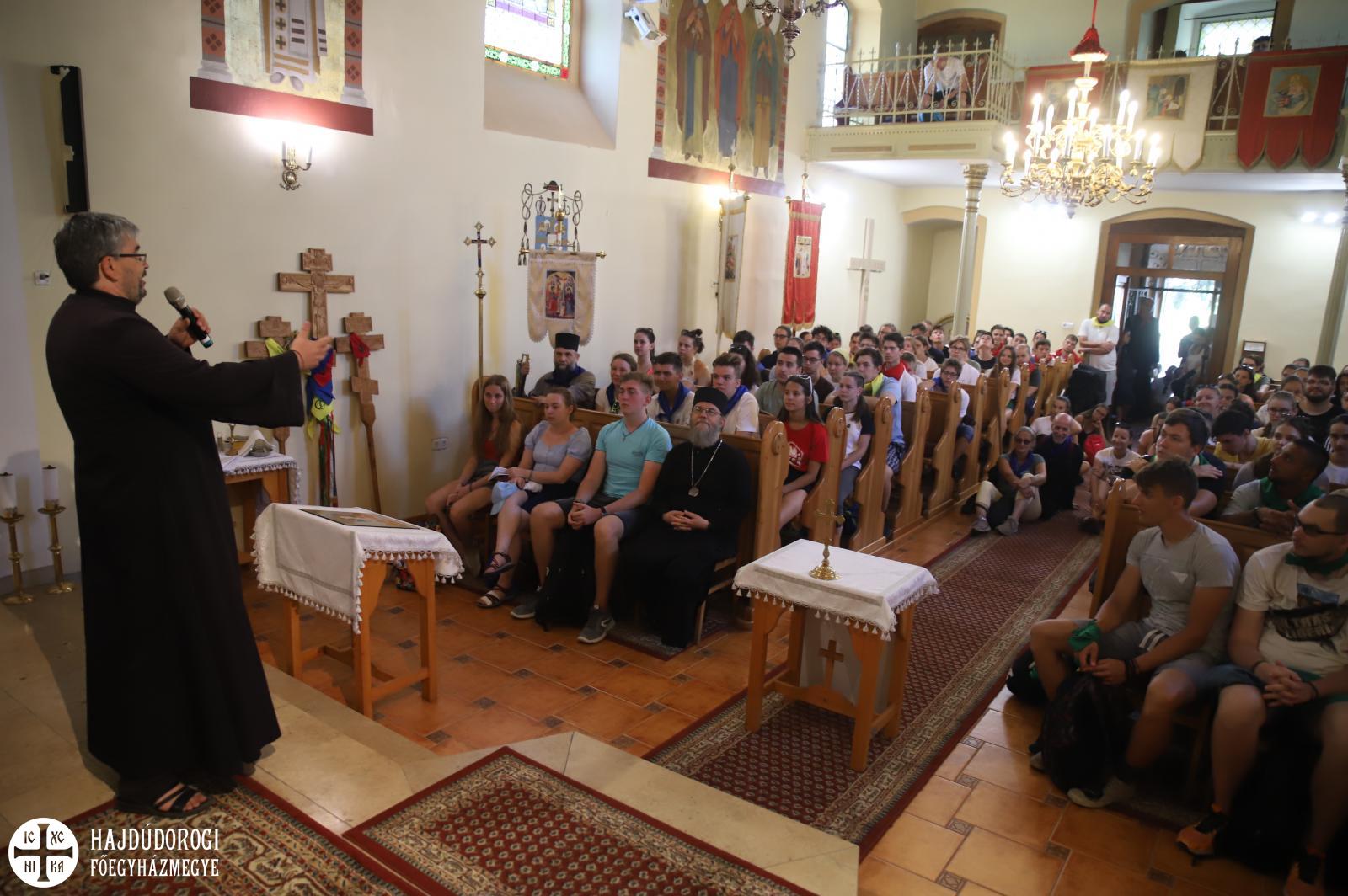 A szokásosnál két órával hamarabb indultak a 20. ifjúsági zarándoklat résztvevői Nyíregyházáról, hogy Oroson és Napkoron át időben érkezzenek a mai nap célpontjához, Levelekre. Az orosi templomban Monostory Marcell parókus atya fogadta őket.