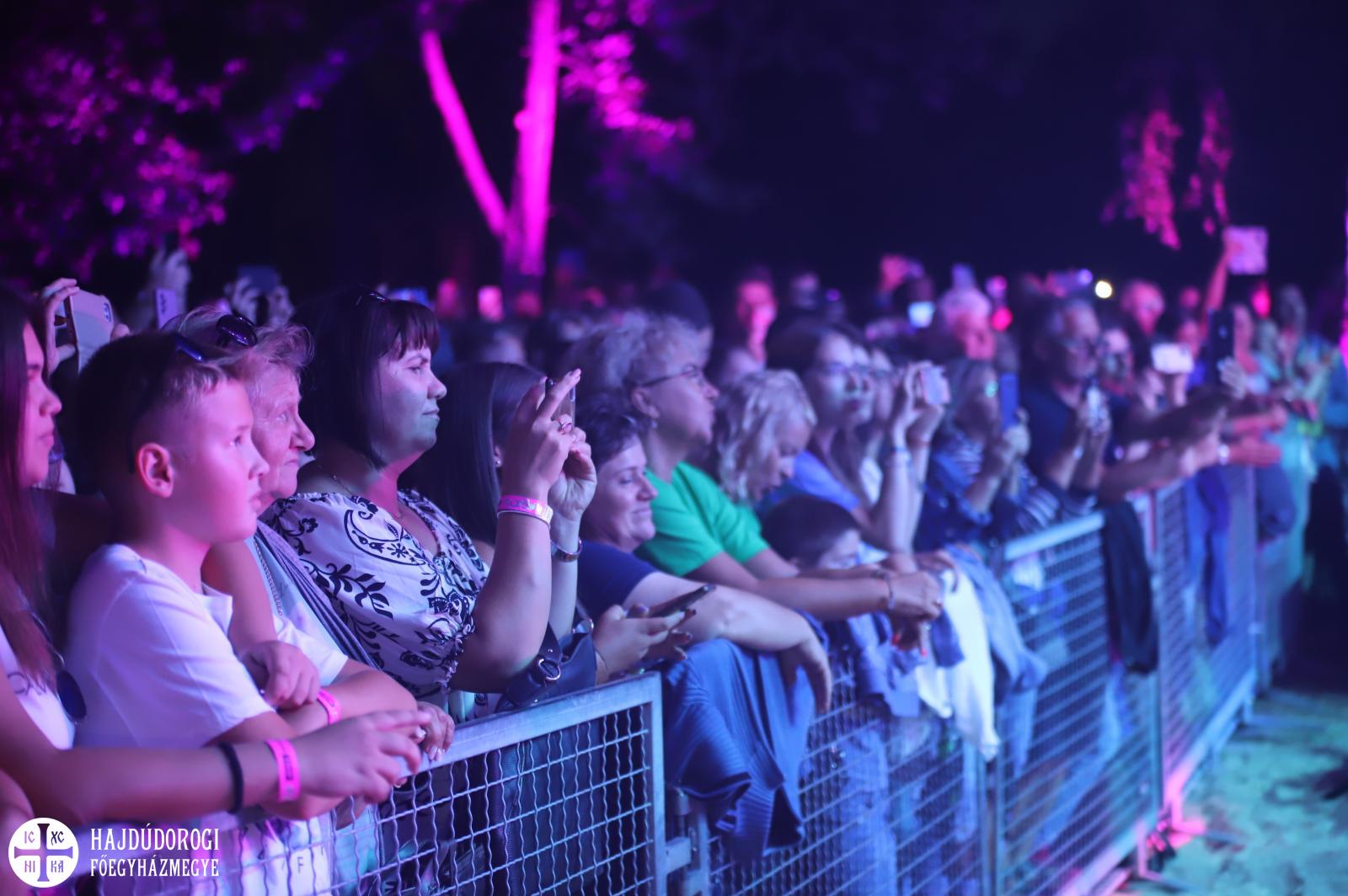 Este 8 óra után kezdődött Rúzsa Magdi koncertje a tó partján. A Görögkatolikus Metropólia jóvoltából mindenki számára ingyenes koncert iránt az egész megyéből óriási volt az érdeklődés - olyannyira, hogy jóval a koncert kezdete előtt jelentős torlódás alakult ki a Levelek felé vezető út mindkét irányában. Biztonságtechnikai okokból csak 3500 ember tartózkodhatott a tófürdő területén, ám a kerítésen kívül is több százan voltak kíváncsiak a koncertre.