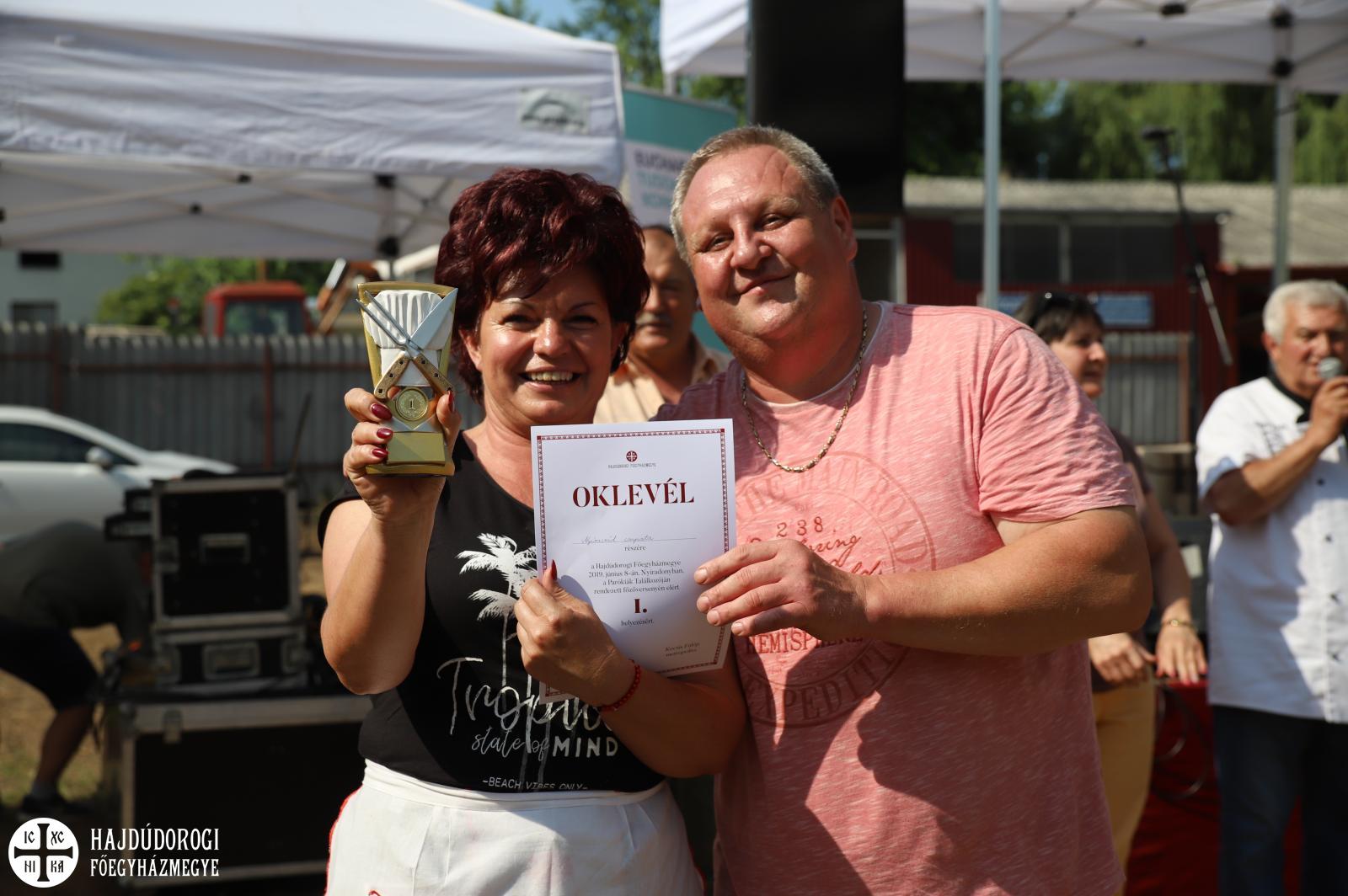 Nem maradhatott el a főzőverseny sem, amelyre több egyházközség, csoport, baráti társaság nevezett be. Az elkészült ételeket egymás között is kínálgatva, mindenkit vendégül látva fogyasztottuk el. A finom ételek között az elsőbbséget Nagy Gyula többszörös Nemzetközi Aranyfokozatú Hobbiszakács vezetésével a zsűri csapata döntötte el. Az első helyezett a nyíracsádi egyházközség lett. De nem szomorkodhatott a nyíradonyi Nyugdíjas-klub sem, s a nyíradonyi egyházközségi Karitász csoport sem. S a többiek sem, akik szívesen és örömmel készítették el ételüket.