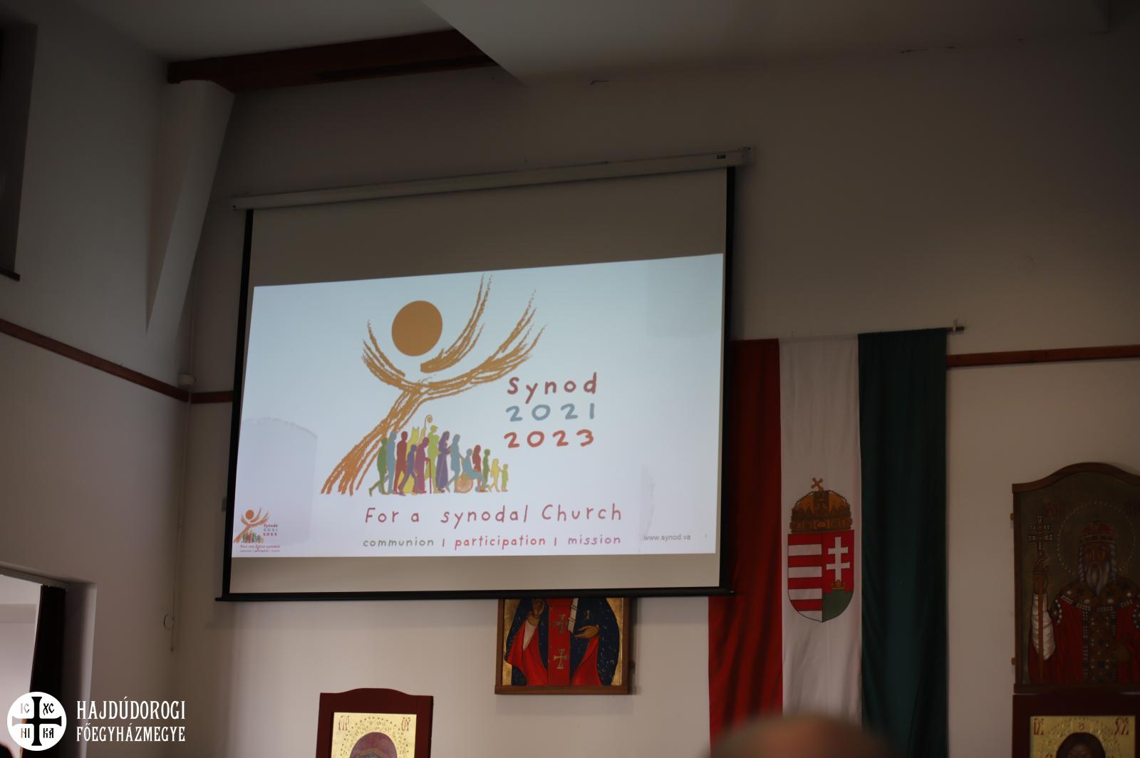 A Szent Liturgián jelen voltak mindhárom egyházmegyénk szinódusi csoportjainak képviselői – idősek, fiatalok, férfiak, nők – akik közös ebéd után Nathalie Becquart nővér előadásán vettek részt a Szent Bazil Oktatási Központ aulájában. Az angol nyelvű előadást tolmácsolva hallgatták a résztvevők. De nem csak hallgatták, hanem aktív részesei is voltak, hiszen – ahogy Natalie nővér mondta – a szinódus maga olyan folyamat, mely az egyház szinodalitásáról szól, minden egyes szereplő aktív részvételével.