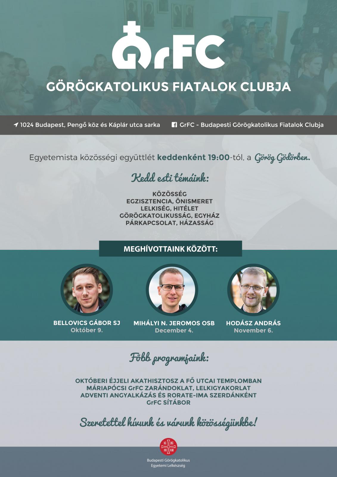 Tartalmas programokkal, érdekes előadókkal várja az érdeklődőket a budapesti Görögkatolikus Fiatalok Clubja. Részletek a plakáton.