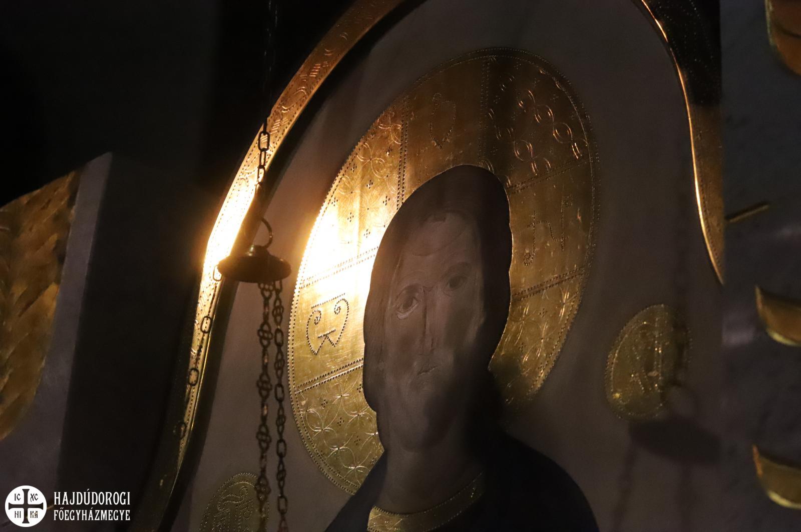 Fedezzük föl, örvendező szívvel adjunk hálát az Úr Istennek ezért a legyőzhetetlen erőért. És adjunk hálát azért is, hogy sok ikonunk van, amelyeket szemlélhetünk, amelyek mindegyike ezt erősíti bennünk. Krisztus leszállt a Földre, egyesült velünk, itt van velünk végérvényesen. Imádkozzunk azokért, akik ezt nem értik! S azokért is, akiket felbőszít a legyőzhetetlen erőnk, akik támadást, támadásokat intéznek a keresztények ellen, dühösek ránk, mert mi Krisztushoz tartozunk. Hiszen éppen ő bátorított minket előre: „Boldogok vagytok, ha miattam gyaláznak és üldöznek titeket, és mindenféle rosszat hazudnak rólatok. Örüljetek és ujjongjatok, mert jutalmatok bőséges a mennyekben. Mi a templomainkban már a mennyben érezzük magunkat. Különösen ebben a szép gödöllői templomban. Talán éppen ezért akarták elvenni tőlünk. Hála Istennek, még ha teljesen elpusztították volna is a templomunkat, a Krisztustól kapott boldogságot elvenni tőlünk lehetetlen.