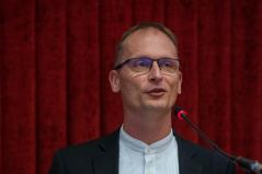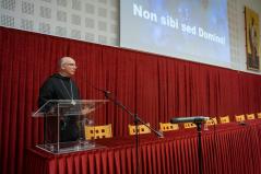 Szabó Tamás pasztorális helynök az iskolalelkészek nehéz, sokszor ellentmondásos megítélésű feladatáról beszélt. Annak a generációnak kell felmutatnia az egyházi oktatási intézményekben valamit, amely sok esetben apa nélküli, minimális minőségi időt kap, rendezetlen családi körülmények közül érkezik. „Ezért az egyház és papságunk számára is nagy kihívás, hogy megmutassuk a mennyei Atya arcát, hogy felmutassuk az apaságot/atyaságot”, hogy otthont, lelki otthont (templom, maga az Isten) mutassanak. A kötelességek világában a lehetőségek Istenét láttatni, a kommunikációs válságban a hamis tér, elmagányosodás, bálványok helyett valódi közösséget teremteni.