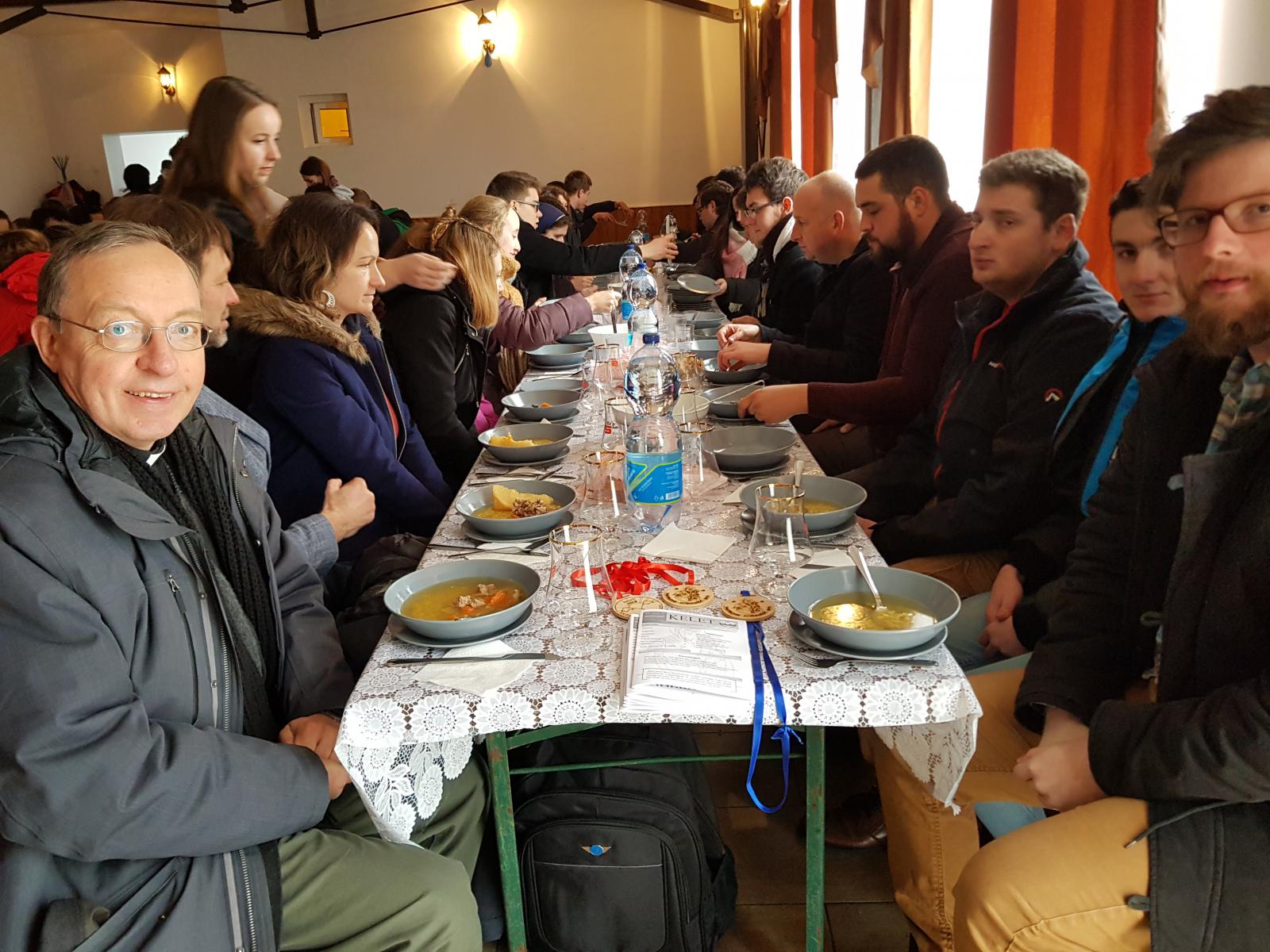 Végezetül Schönberger püspök ebéddel látta vendégül a résztvevőket. A másfél nap Kelet-együttlét maradandó élményt jelentett és közösséggé formálta a magyar katolikus egyetemistákat.