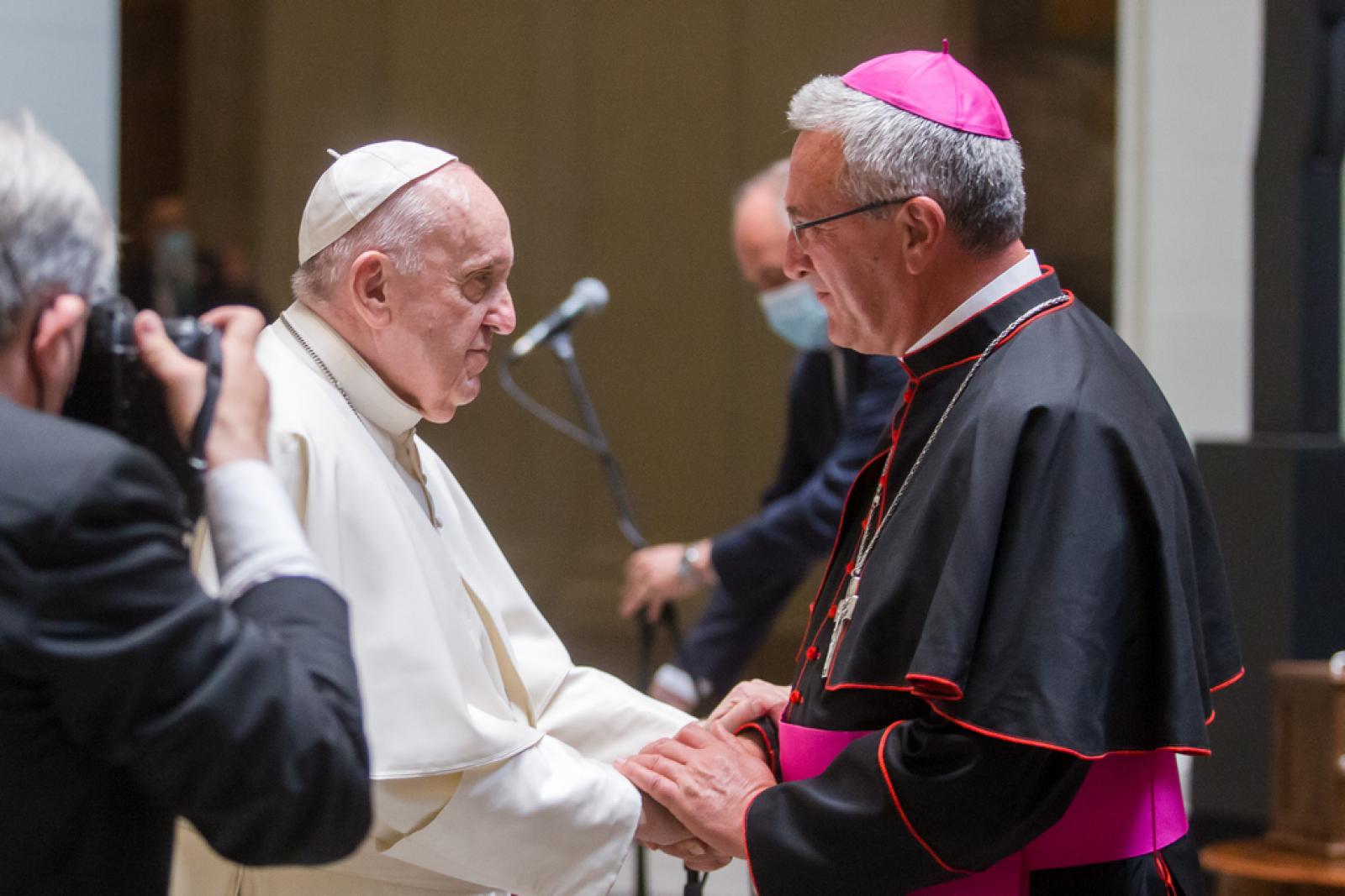Veres András győri megyéspüspök, az MKPK elnöke köszöntőjének és a Szentatya elhangzott beszédének hivatalos magyar nyelvű változatát teljes terjedelmükben közöljük: