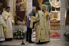 Az egyház növekedése a mi életünknek is része, ez nem csak a múlthoz, hanem a jelenhez is hozzátartozik, ennek mi is részesei vagyunk folyamatosan – hívta fel a figyelmet érsek atya. „Növekednie is kell! Azért ünnepeljük újra és újra a feltámadást, hogy szembesítsen az egyház bennünket, Krisztus-követőket, hogy hol is vagyunk, mi a mi életünk!” Lehet, hogy ez most furcsán hat a mai világban, ezekben az esztendőkben, hiszen pont az ellenkezőjét látjuk. Manapság éppen ott üldözik a legjobban a keresztényeket, – Szíria és Kis-Ázsia területén –, ahol egykor virágzásnak indult. Ez is a valóság része, ezzel is szembesülnünk kell, hogy ne hagyjuk ezt a rombolást. Hacsak közvetve, de a mi felelősségünk is, hogy Jézus szülőföldjén ne pusztuljon ki a kereszténység! Ezt – érsek atya szerint – akkor lehet elkerülni, ha Krisztus elvárása szerint ott fog növekedni az egyház, ahol mi vagyunk. „Első sorban bennem, környezetemben, családomban” – erről, ezen az alkalmon különösen jó dolog volt beszélnie a metropolitának, hiszen szép számmal megtelt a templom, köszönhetően Haramura Béla testvérnek is.
