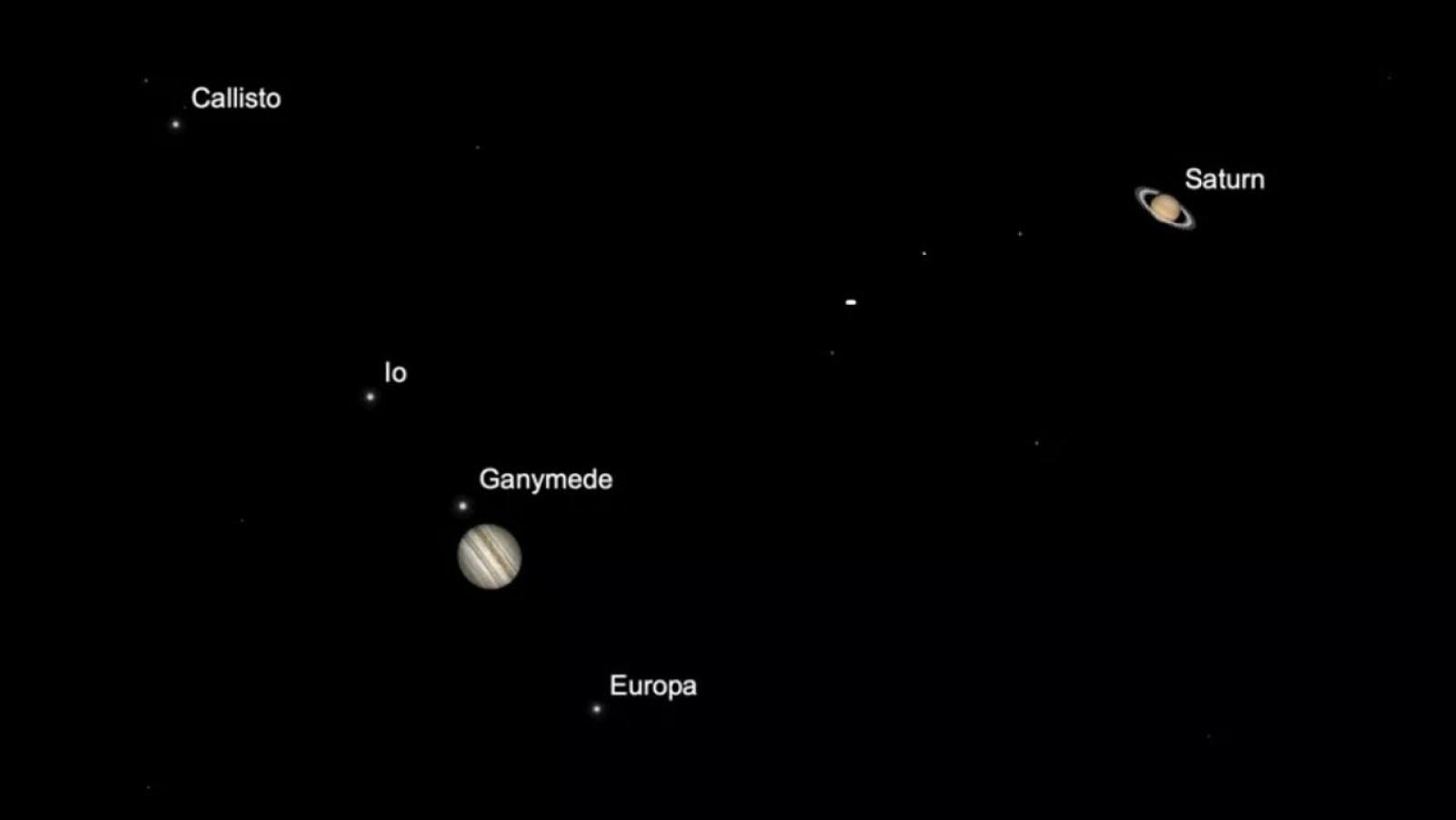 Csillagászati távcsővel nagy nagyításon egy látómezőben lesz látható a két bolygó és holdjai