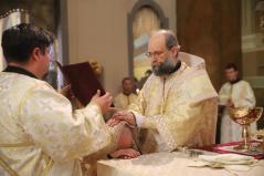 Márk alszerpapot testvére Máté diakónus és Nyirán János fődiakónus kísérte körbe háromszor az oltár körül, hogy annak sarkait megcsókolva járuljon a trónszéken ülő püspök elé, és a krisztusi hatalom jelképeit megcsókolva fogadjon neki engedelmességet. Majd szintén az oltár sarkánál letérdelve fogadta a püspöki kézrátétel imáját, a hívek könyörgéseit, végül pedig a diakónusi szolgálathoz szükséges ruhadarabokat és tárgyakat: a ripidiont (angyalokat ábrázoló, szolgálatukat jelképező díszes tányér) és a tömjénezőt. Majd ezeket föl és átvéve nyomban az oltár elé állt, hogy bekapcsolódjék a Legszentebb szolgálatába.
