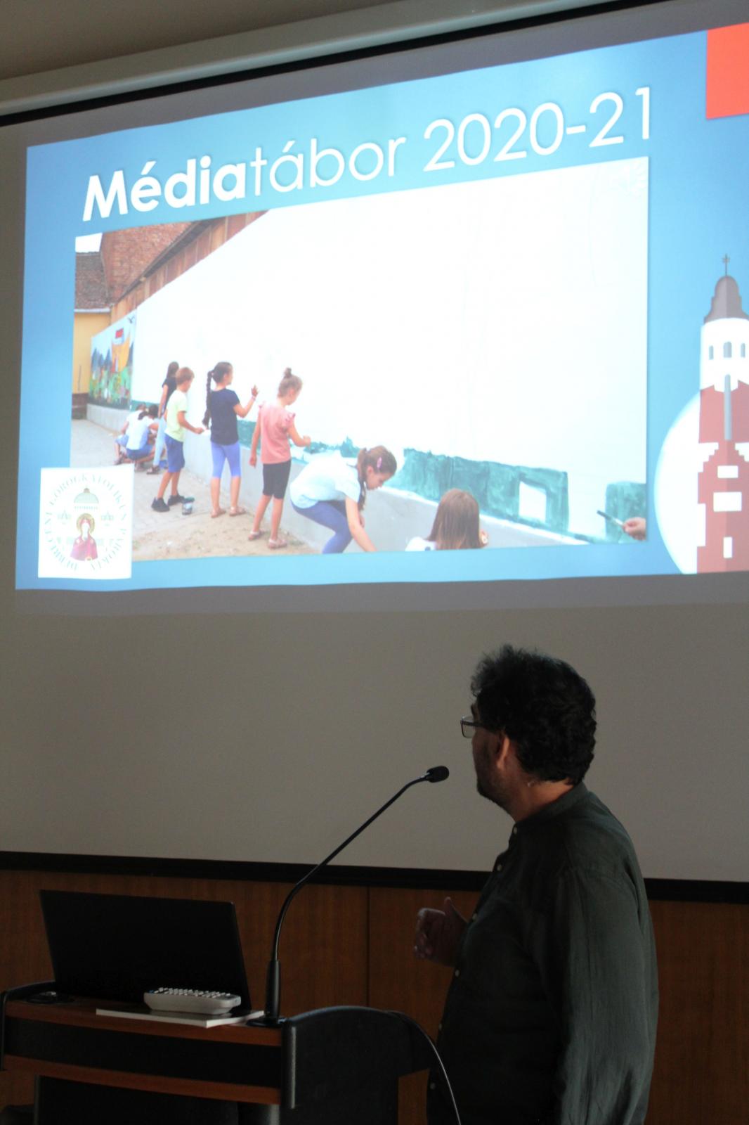 Kondás Sándor atya, a Görögkatolikus Médiaközpont vezetője egészségügyi okok miatt nem tudott részt venni az esten, ezért fia, Kondás Kristóf mutatta be a 2020-as Médiatáborban résztvevő gyermekek és fiatalok munkáit. A kiscsoportokban táborozó fiatalok tavaly készült videóit, képeit látva több résztvevő gyermek arcára is nosztalgikus mosolyt csalt az előadás.