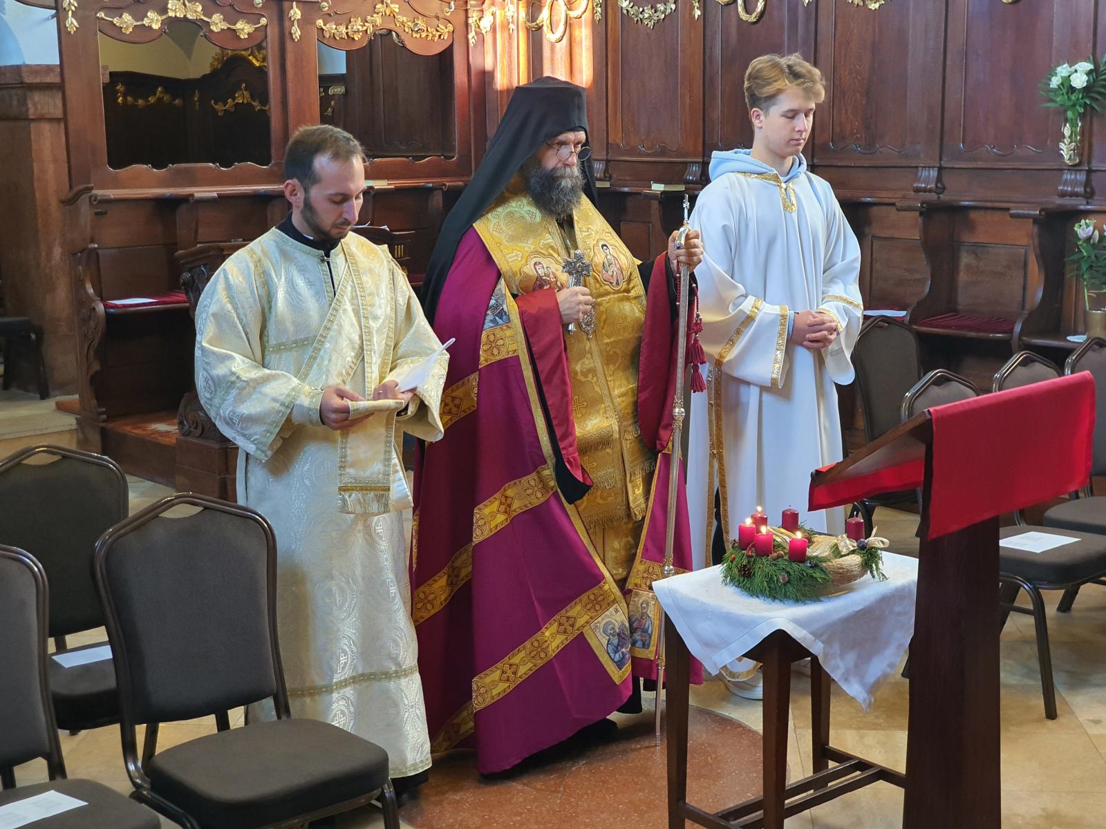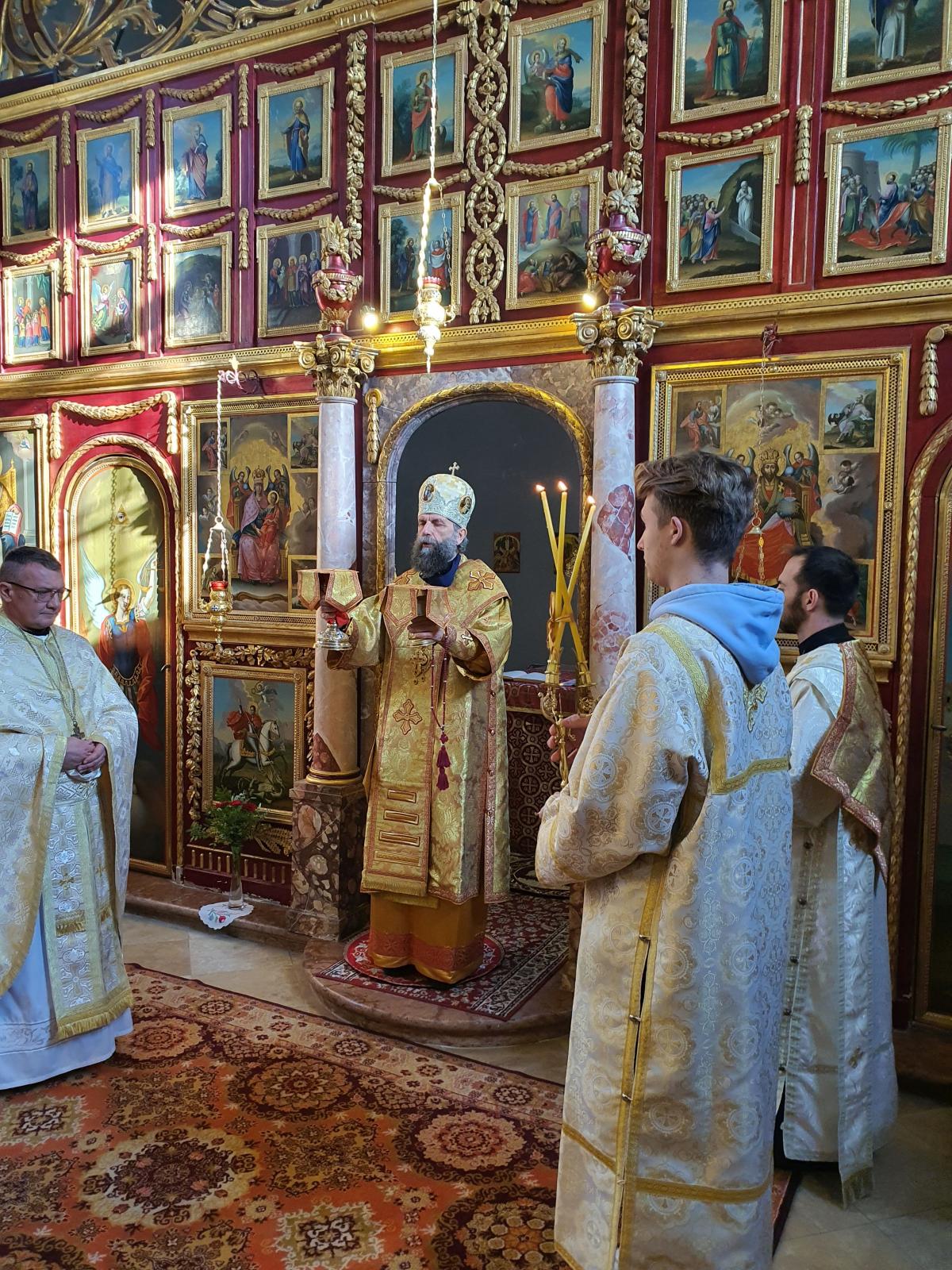 Az idei templombúcsúnkat a koronavírus-járvány miatt nem tudtuk a szokásos módon megünnepelni, ennek ellenére mégis meghitt és méltó körülmények között imádkozhattunk, kérhettük védőszentünk közbenjárását templomunkban. A napot reggel utrenyével kezdtük, majd Szent Liturgiával folytattuk, amin Istennek hála szép számmal részt tudtunk venni a körülmények ellenére is. Fülöp metropolita atya prédikációjában kiemelte a karácsonyt megelőző böjti időszakhoz kapcsolódóan a bűnbánat, a megbocsájtás és az Isten iránti szeretetünk fontosságát. Az ünnepség végén egy kis ajándékkal kedveskedett gyermekeinknek.