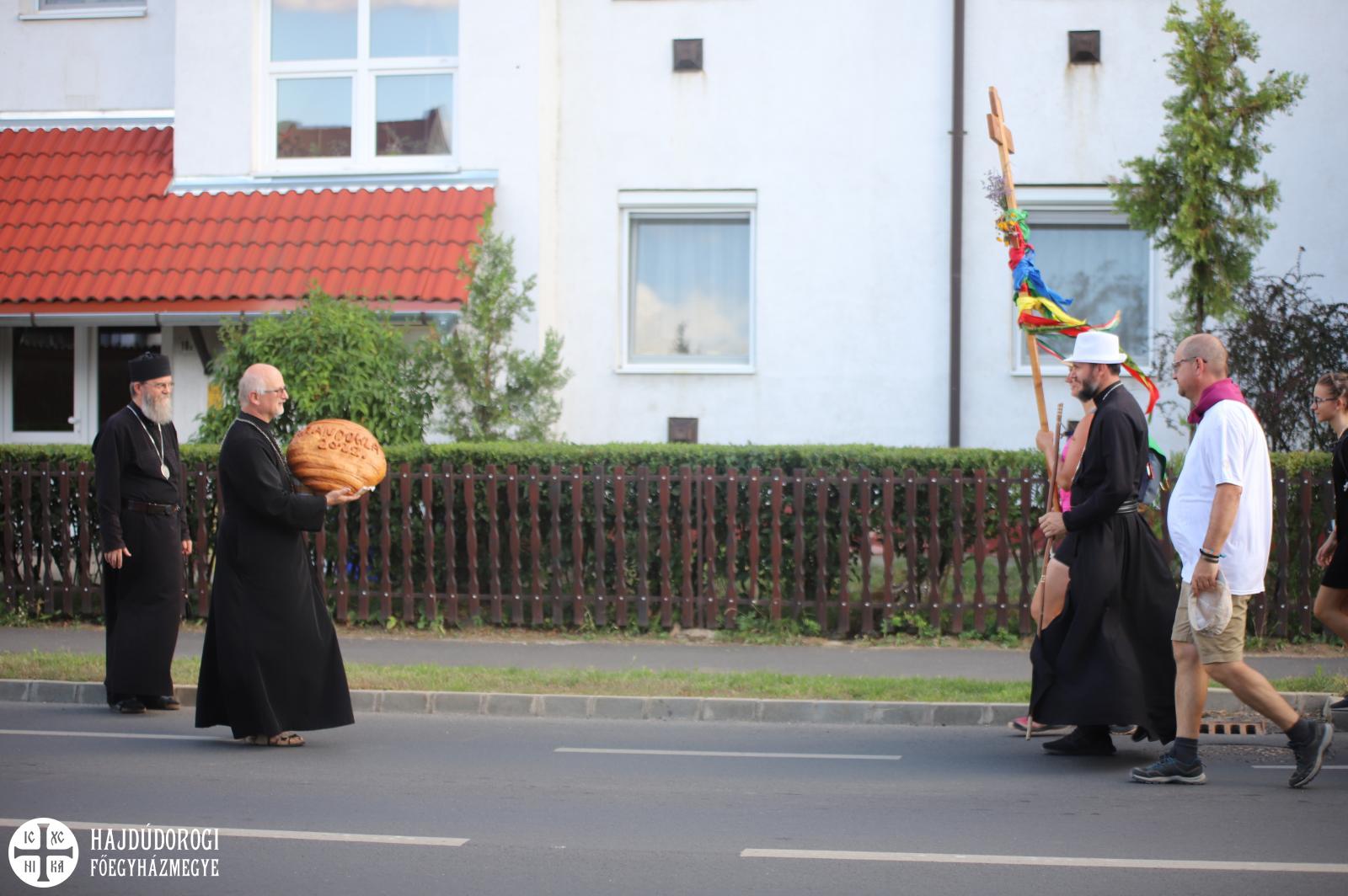 A zarándokok a megyeszékhelyre a Kertvároson keresztül érkeztek Szocska A. Ábel nyíregyházi megyéspüspöknek és dr. Seszták István atyának, a Hajdúdorogi Főegyházmegye főhelynökének a vezetésével, ahol két helyszínen is tartottak egy-egy rövidebb megállót. A Nyíregyháza-kertvárosi Görögkatolikus Egyházközség tagjai, köztük a Sarkadi család és a közösség parókusa, dr. Obbágy László atya süteménnyel, gyümölccsel, jégkrémmel és egy „Zarándoklat 2022.” feliratú, frissen sült kenyérrel várta őket.