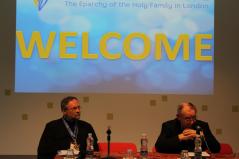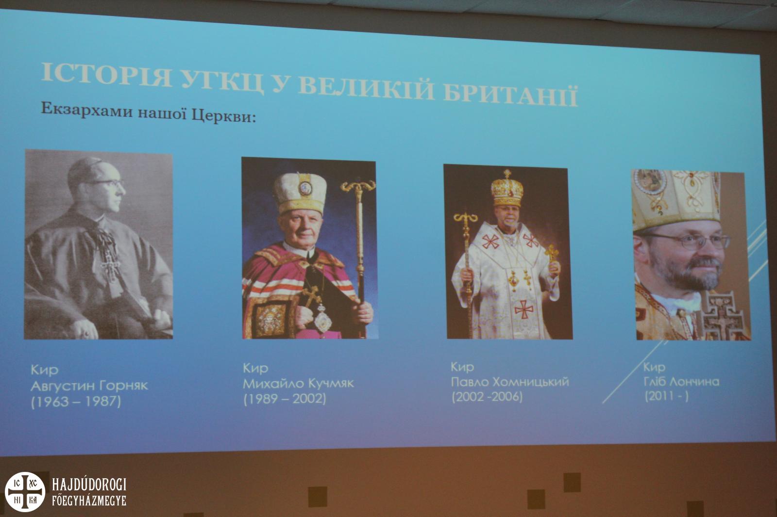 A nyitóülésen részt vett Mons. Paul McAleenan londoni segédpüspök, aki Vincent Nichols bíboros köszöntését tolmácsolta, imáiban kérve, hogy a Szentlélek legyen jelen ezekben a találkozásainkban. Ezután Edward J. Adams, Nagy-Britannia apostoli nunciusa adta át a Szentatya üdvözletét. Ferenc pápa apostoli áldását adta a találkozóra, s egyben köszöntötte az ukrán egyházmegye ünneplő híveit nagyérsekükkel együtt. Külön hangsúlyozta az evangélium hirdetésének fontosságát, hogy föl kell fedezni, s másoknak is tovább kell adni az Istennel és másokkal való közösségi élet szépségét és örömét. Úgy állította elénk Krisztus képét, mint a jelen pillanat gonoszságaira válaszként adott antidórt (viszont-ajándékot). A kérügma és a misztagógia révén Krisztus üdvözítő munkája az egyházon keresztül ma is folytatódik.