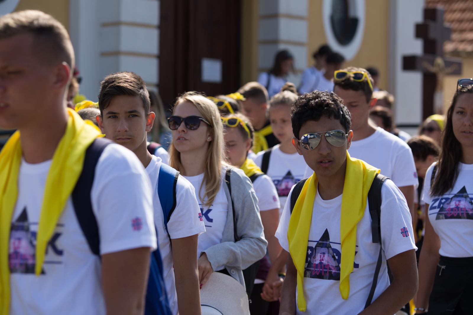 A templomban elérzékenyülve, a templomtéren felállított tábori oltár előtt már önfeledt jókedvvel ültek újra egymás mellé a fiatalok, akik ugyan zömében a középiskolás korosztályból érkeztek, de voltak köztük idősebbek és nosztalgiázó zarándokok, vagy gyermekükhöz csatlakozó házaspárok.