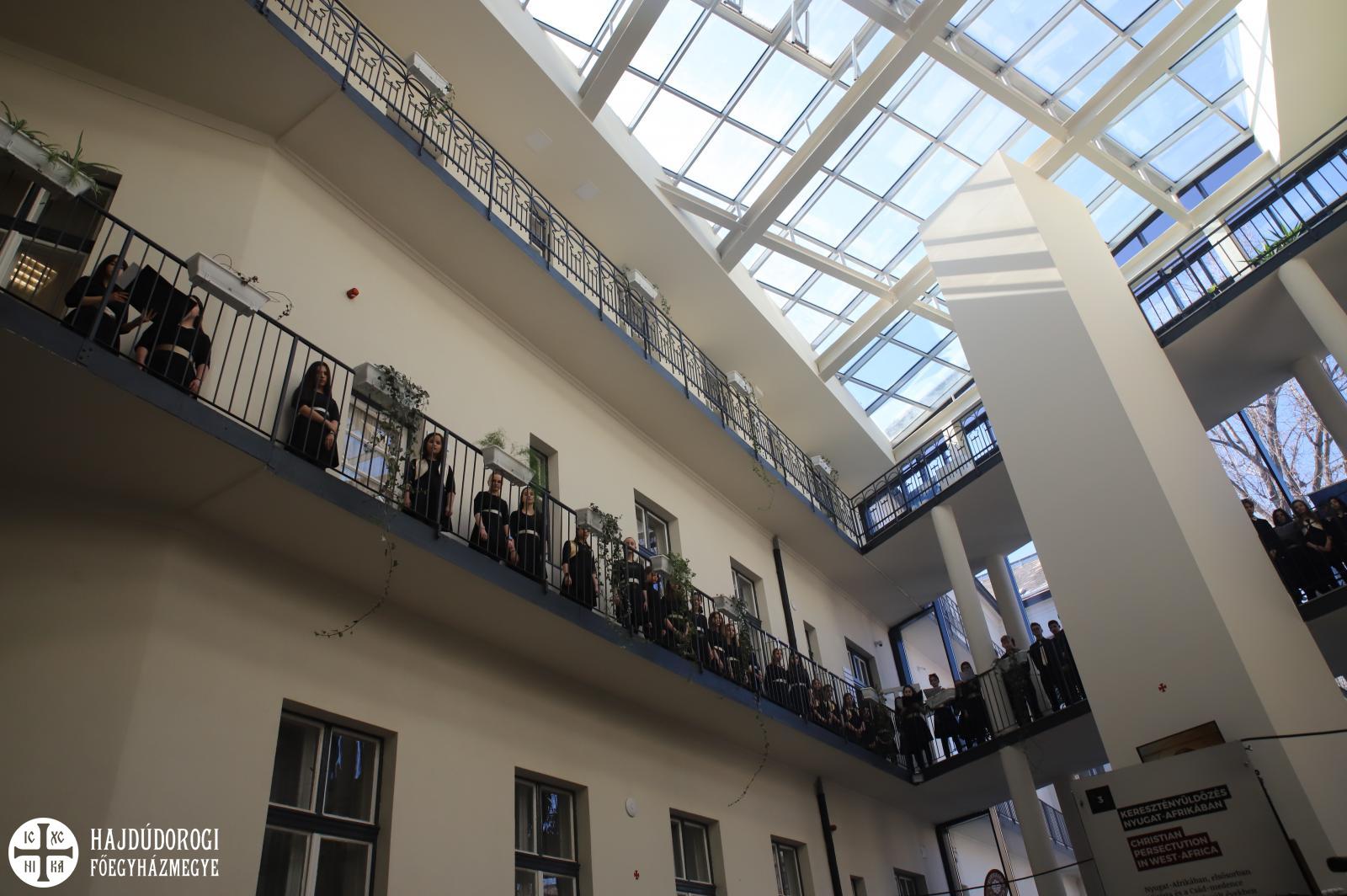 A megnyitó a Lautitia kórus éneklésével zárult, ezt követően Varga Lujza, a kiállítás koordinátora vezette végig a tárlaton a jelenlévőket.