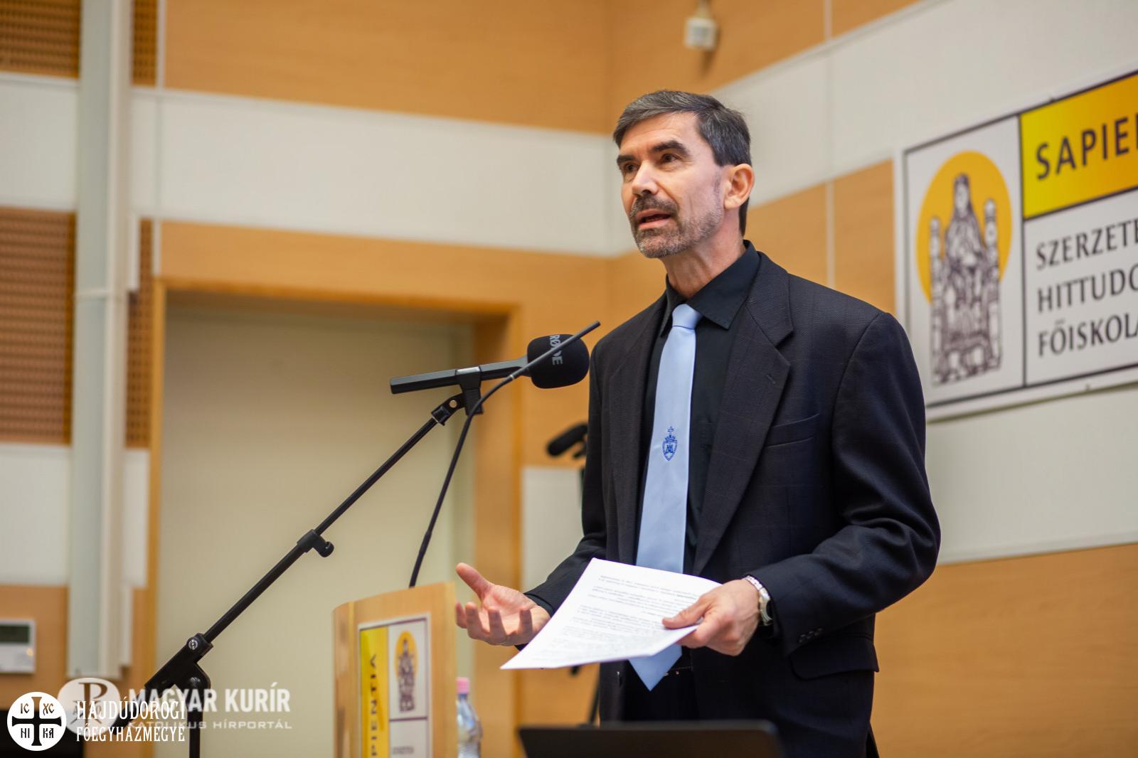 A mai nagyon sűrű hálózatban, a komplex társadalmakban gyorsan változik a lehetőségek tere – miközben motoszkál bennünk sokszor egy érzés, mely szerint minden változatlan, csak követnünk kellene a hagyományos utat. Schmal Dániel ehelyett a hagyomány újragondolására biztatta a jelenlévőket; az alkalmazkodási kényszer felülírhatja az adottnak gondoltat – csak a célt nem írhatja felül, ami az egyensúly, a krisztusi üzenet.