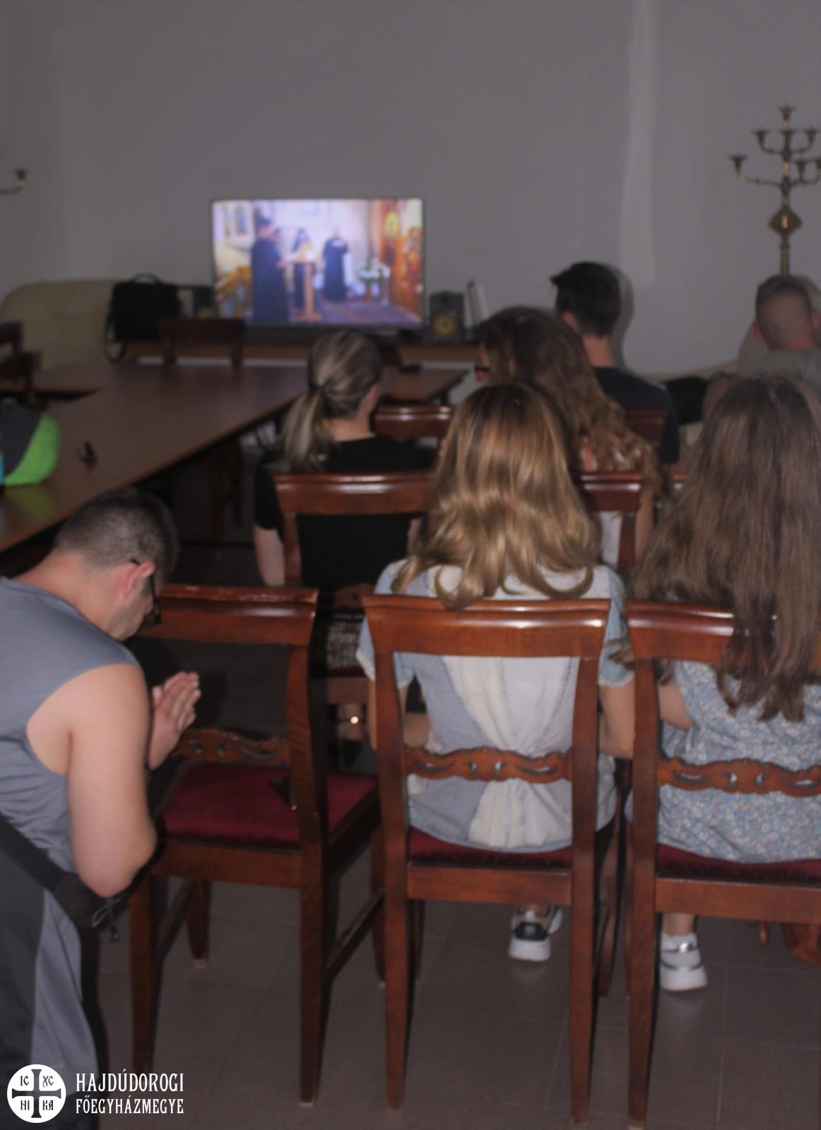 Az este további részében a vecsernyén elhangzó tanításról zajlott a beszélgetés Gusztáv atya vezetésével. Vajon milyen lesz Istent meglátni majd az utolsó napon? Milyen kérdés lesz az, amire az Úr félelmetes ítélőszéke előtt olyan fontos majd jó felelelet adnunk.