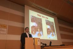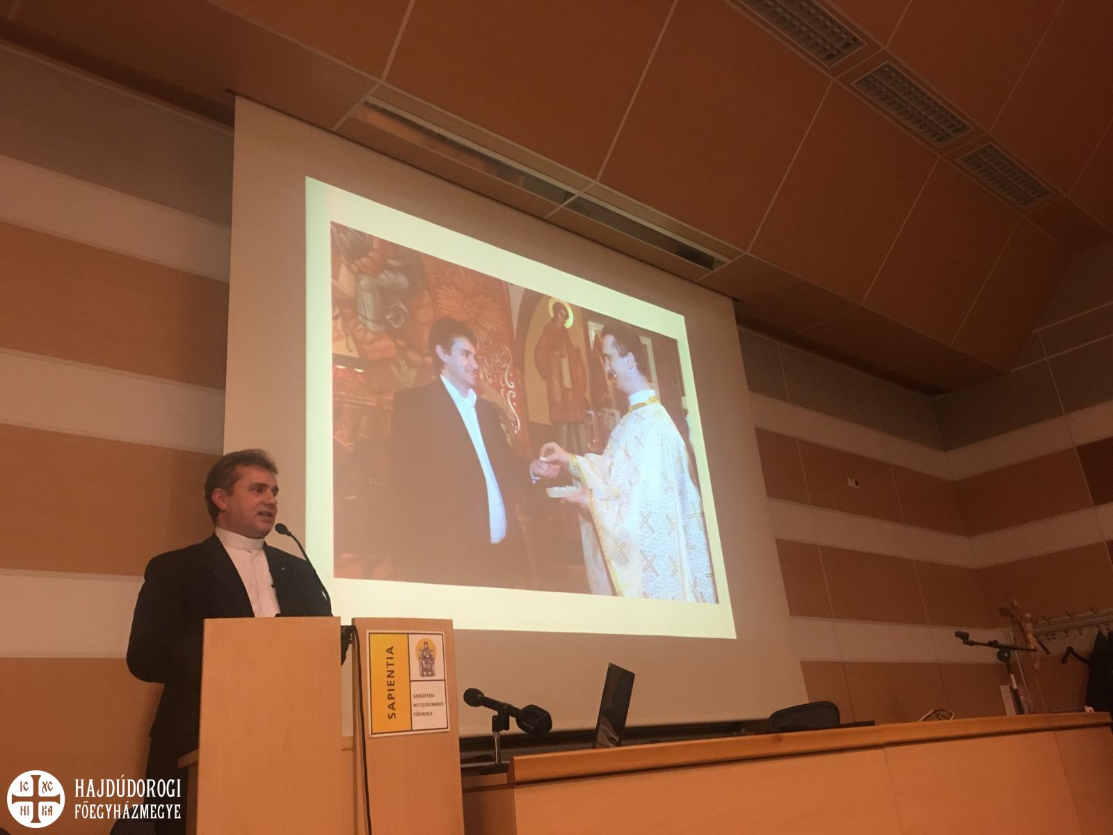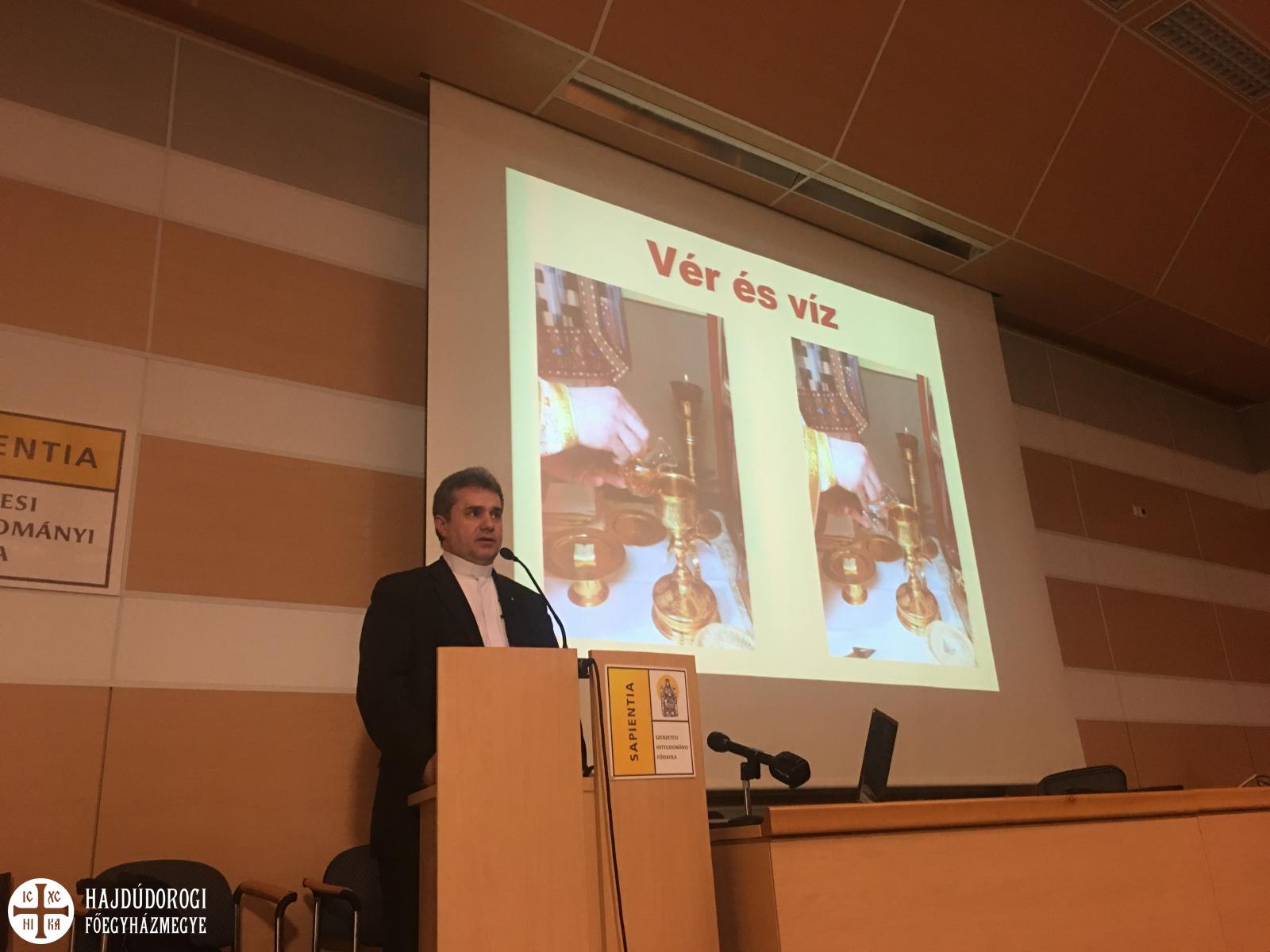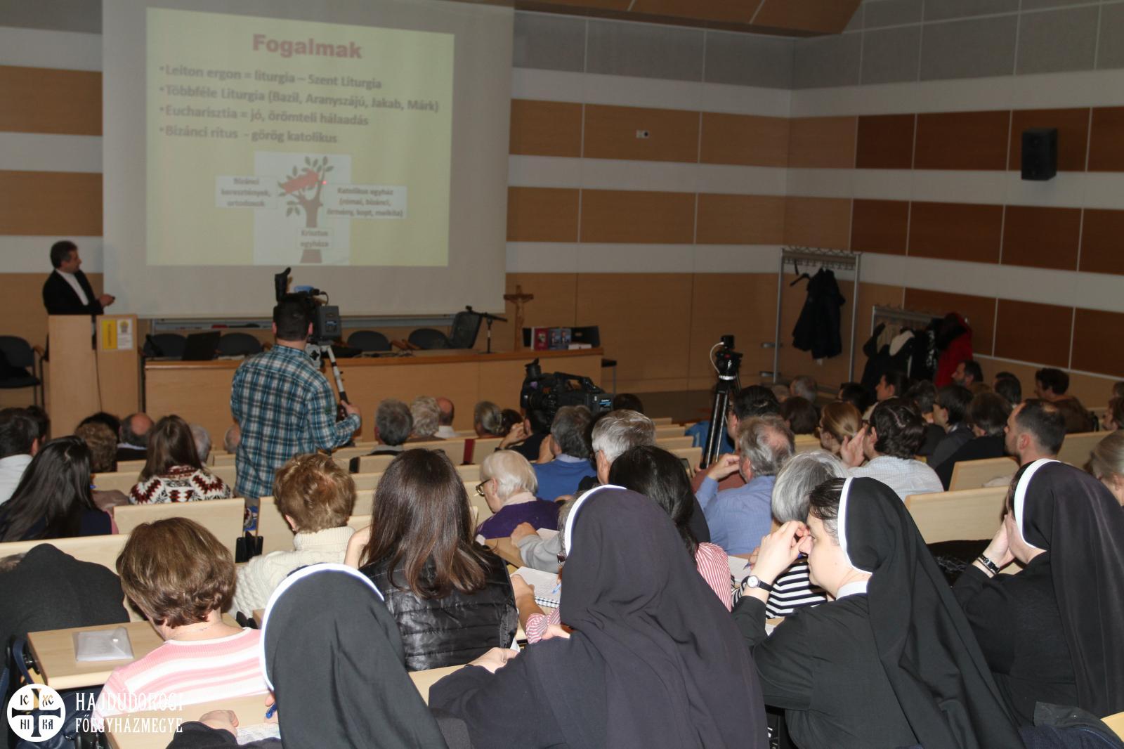 A Sapientia Főiskola nagy előadóterme zsúfolásig megtelt; a szép számban jelen lévő római katolikus testvéreknek ezen az estén biztosan sikerült közelebb kerülniük a görögkatolikus liturgiához.