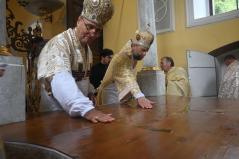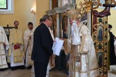 A szertartás ünnepi körmenettel kezdődött az oltárban elhelyezett ereklyével a középpontban, majd megszentelték az oltárt, a templom falait és a frissen restaurált ikonosztáziont.