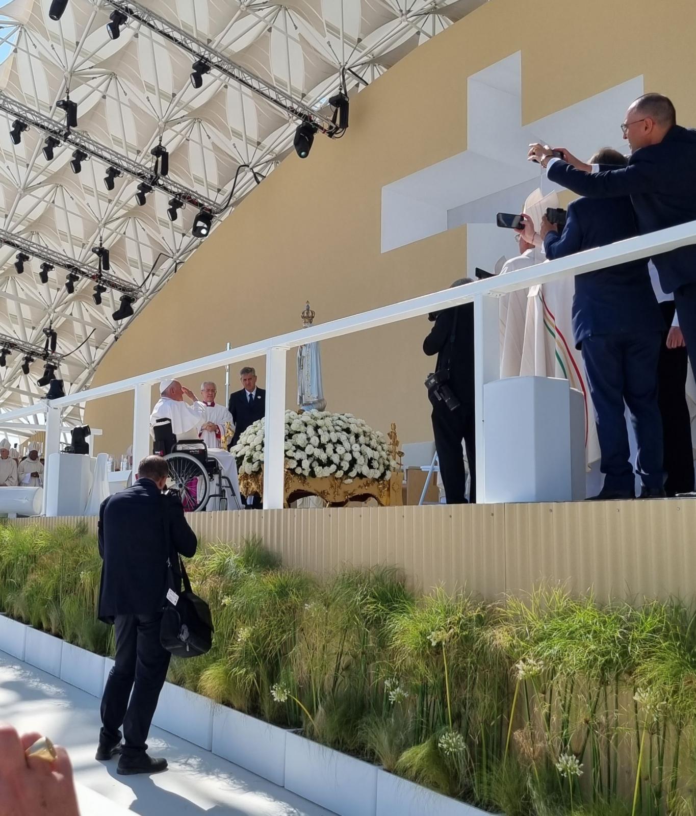 – Nekünk is nagyon jó volt az egymással való találkozás. Sok ismerőssel tudtuk köszönteni egymást. Például érdekes helyzet volt, amikor első este a szállodában láttam egy idős atyát civil ruhában. Nekem, sajnos, elég rossz az arcmemóriám, de ismerős volt az arca. Barátságosan megszólítottam, hogy honnan érkezett. Luxemburgból – válaszolta. Akkor esett le nekem, hogy Hollerich bíborossal beszélgetek. Érdekes módon ő viszont emlékezett rám. Megbeszéltük, hogy legközelebb majd a szinóduson találkozunk. Ferenc pápával beszélgetni személyesen nem volt lehetőségem. A végén azonban a közelébe jutottam. A szentmise után, ahogy áprilisban a Kossuth téren az Istenszülő-ikon előtt hosszan időzött, itt is odament imádkozni a fatimai szobor elé. Miközben a fiatalok énekeltek, ujjongtak, táncoltak, Ferenc pápa hosszan, csöndben imádkozott a szobor előtt. Mikor észrevettem, több püspöktársammal odaszaladtunk. A közelében – pár méterre tőle – együtt imádkoztunk.