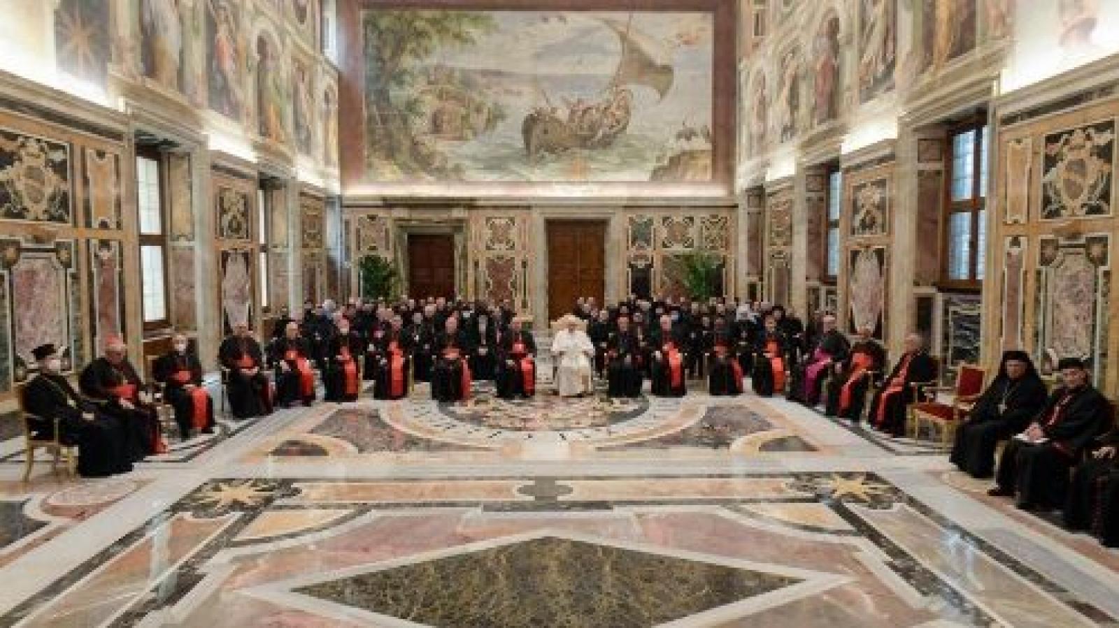Ferenc pápa ezután a liturgia fontosságáról és szépségéről szólt, mely a keleti egyházak szóhasználatában a mennyet összeköti a földdel. A liturgiára összegyűlt közösség az ég felé fordítja tekintetét, a Magasságos Isten hangjára figyel, és ezért szükségét érzi, hogy Krisztust hirdesse testvéreinek. A Keleti Katolikus Egyházak kánonjogi kódexében (CCEO) szereplő liturgikus előírások alkalmazásáról 25 éve kiadott útmutató adta a témáját a most megtartott konferenciának. Ez jó alkalom arra, hogy megismerjék egymást a különböző saját jogú egyházak liturgikus bizottságain belül, és a vatikáni kongregációval együtt haladjanak a II. vatikáni zsinat által kijelölt úton. Fontos egymás meghallgatása, saját eredetiségünk megőrzése. El lehet gondolkodni az egyes országokban elterjedt hívek nyelvén történő liturgia bevezetésén, de az ünneplés módjának az egység megélését kell szolgálnia a szinódusok előírása és az Apostoli Szék jóváhagyása szerint.