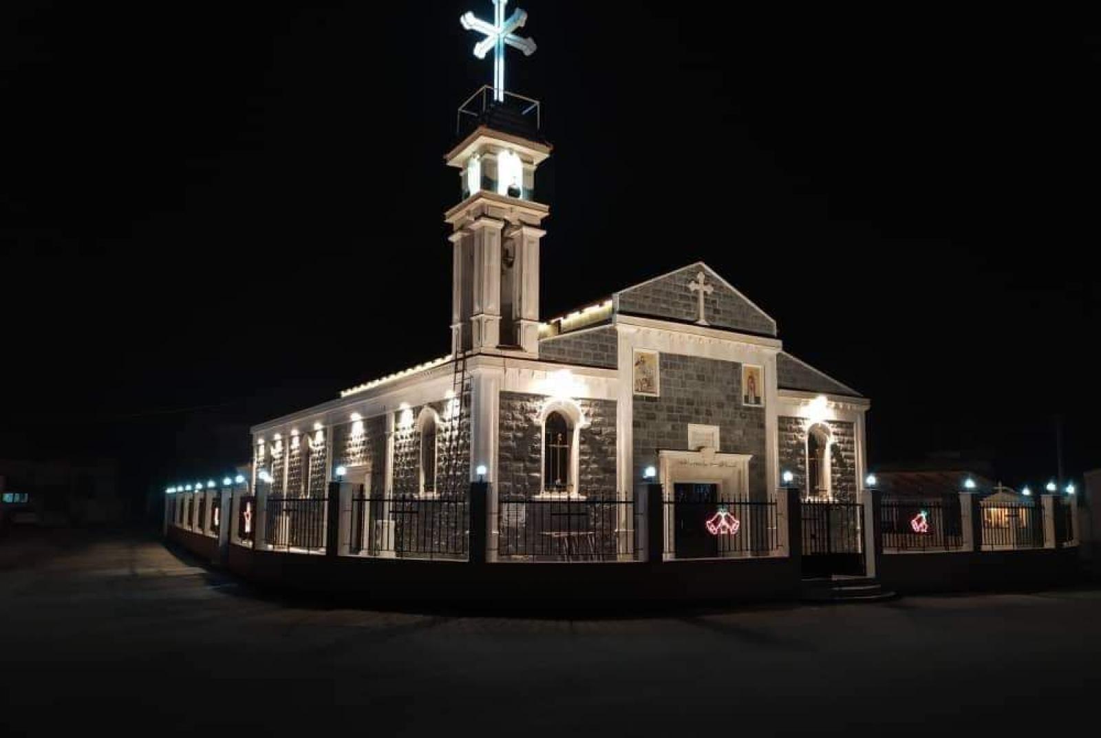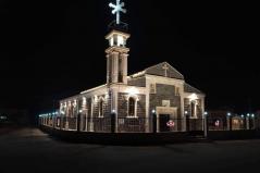 /Al Dmeine falu temploma karácsonyi kivilágításban/