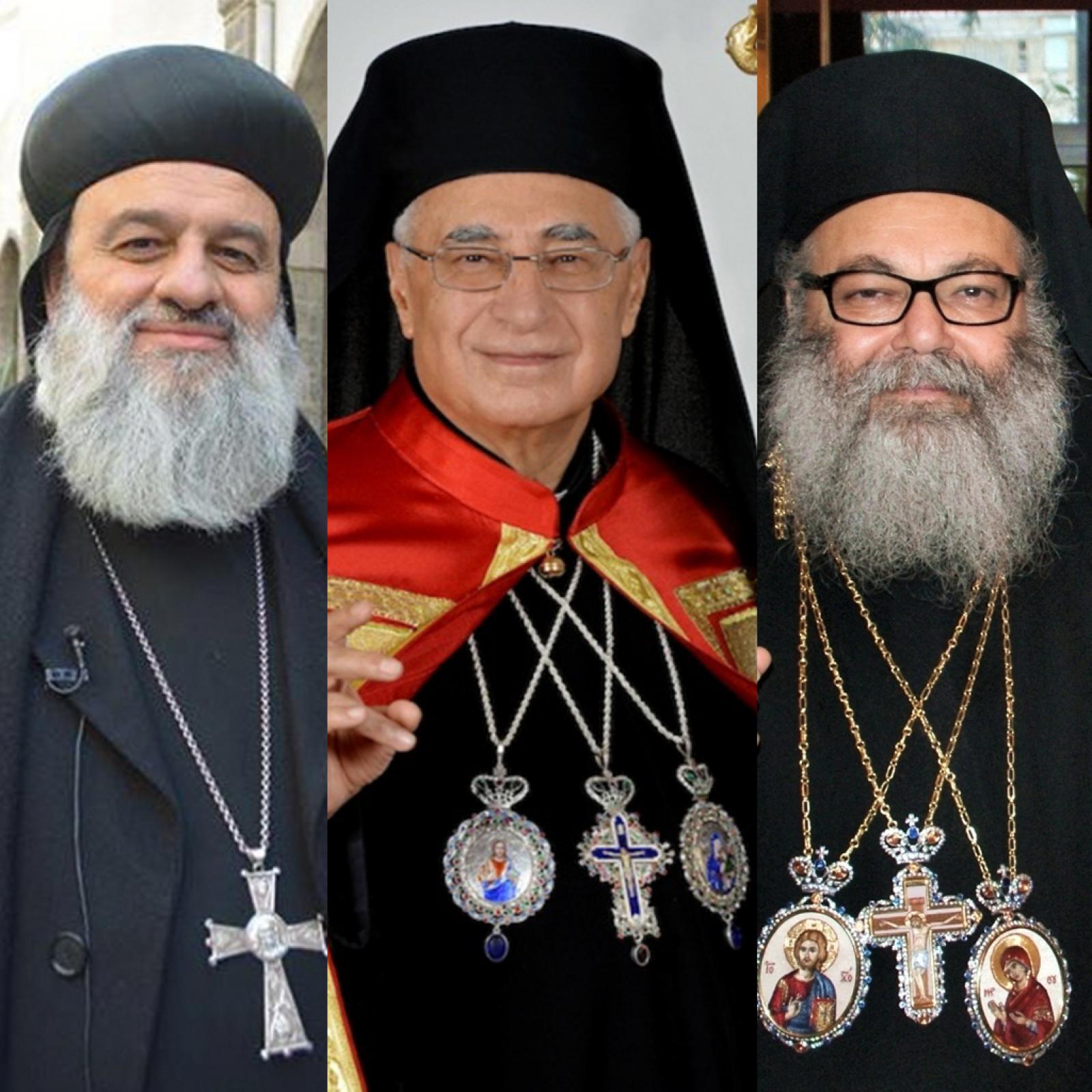 Balról: Ignác Efrém szír ortodox pátriárka, Youssef Absi melkita görögkatolikus pátriárka, X. János antiochiai görög pátriárka nyílt levele