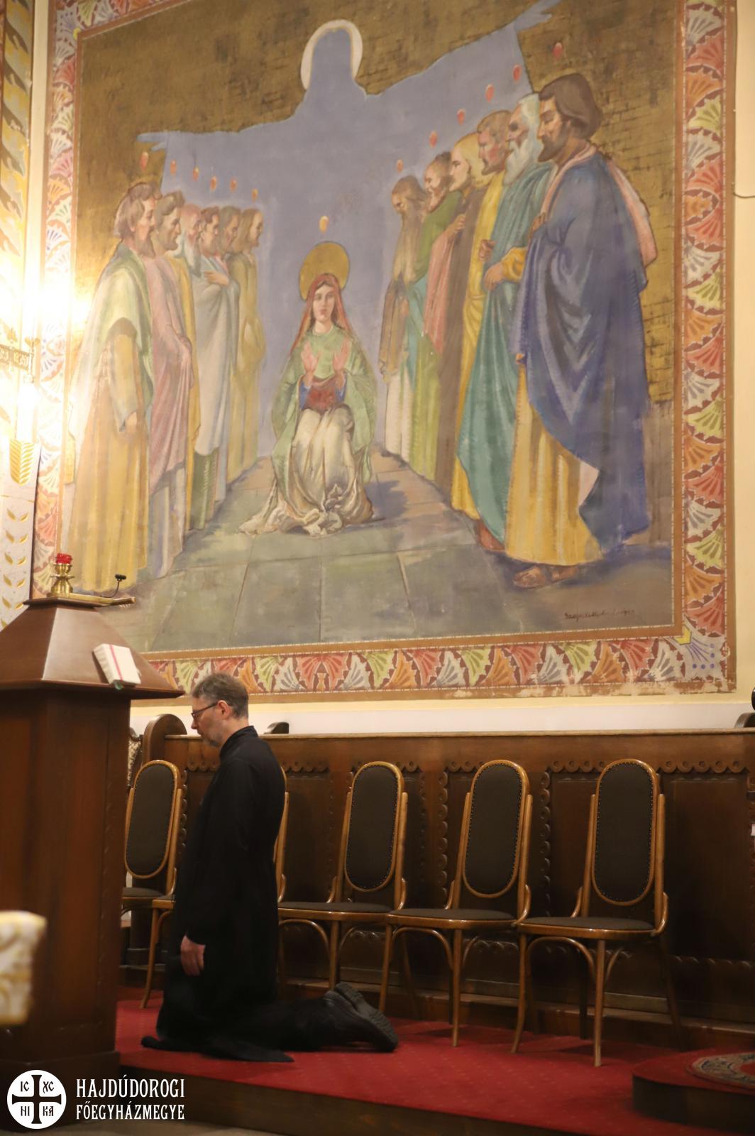 Pünkösdkor szertartásunk a vecsernyével, a térdhajtási imákkal hosszabb a megszokottnál. Vegyünk részt rajta ennek ellenére örömmel és türelemmel. Imádkozzunk együtt Istent dicsőítve és magasztalva bűneink bocsánatáért; egy, a Szentlélektől irányított értékesebb életért, elhunyt szeretteinkért, a jó halál kegyelméért és az örök életért.