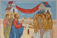 A tíz leprással való találkozás története is arra tanít minket, hogy vegyük észre az életünkben, mennyi mindenért hálásak lehetünk az Istennek. A tíz közül csak egy gyógyult meg igazán, az, aki köszönetet tudott mondani.