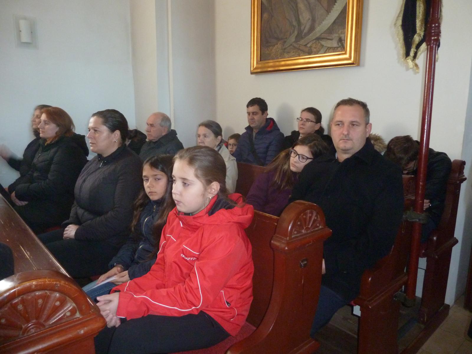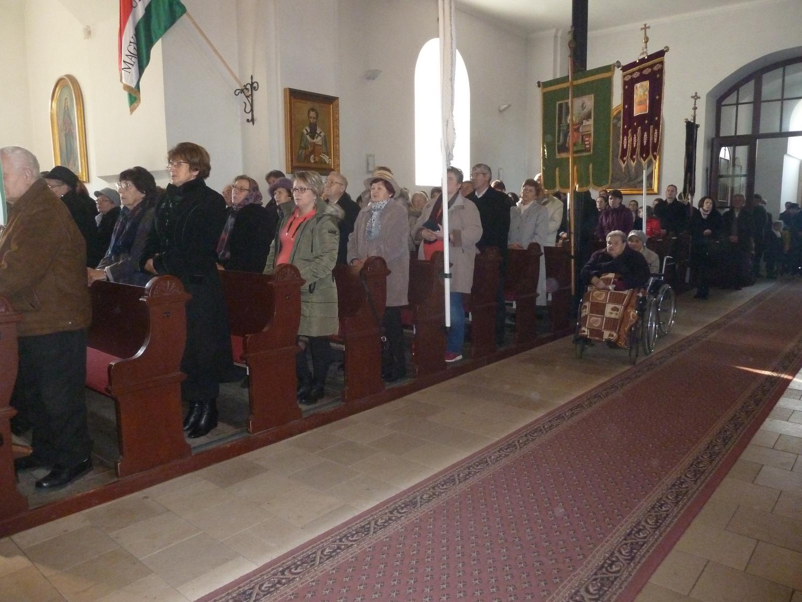 A templom zsúfolásig megtelt hívekkel, minden korosztályt képviselve.