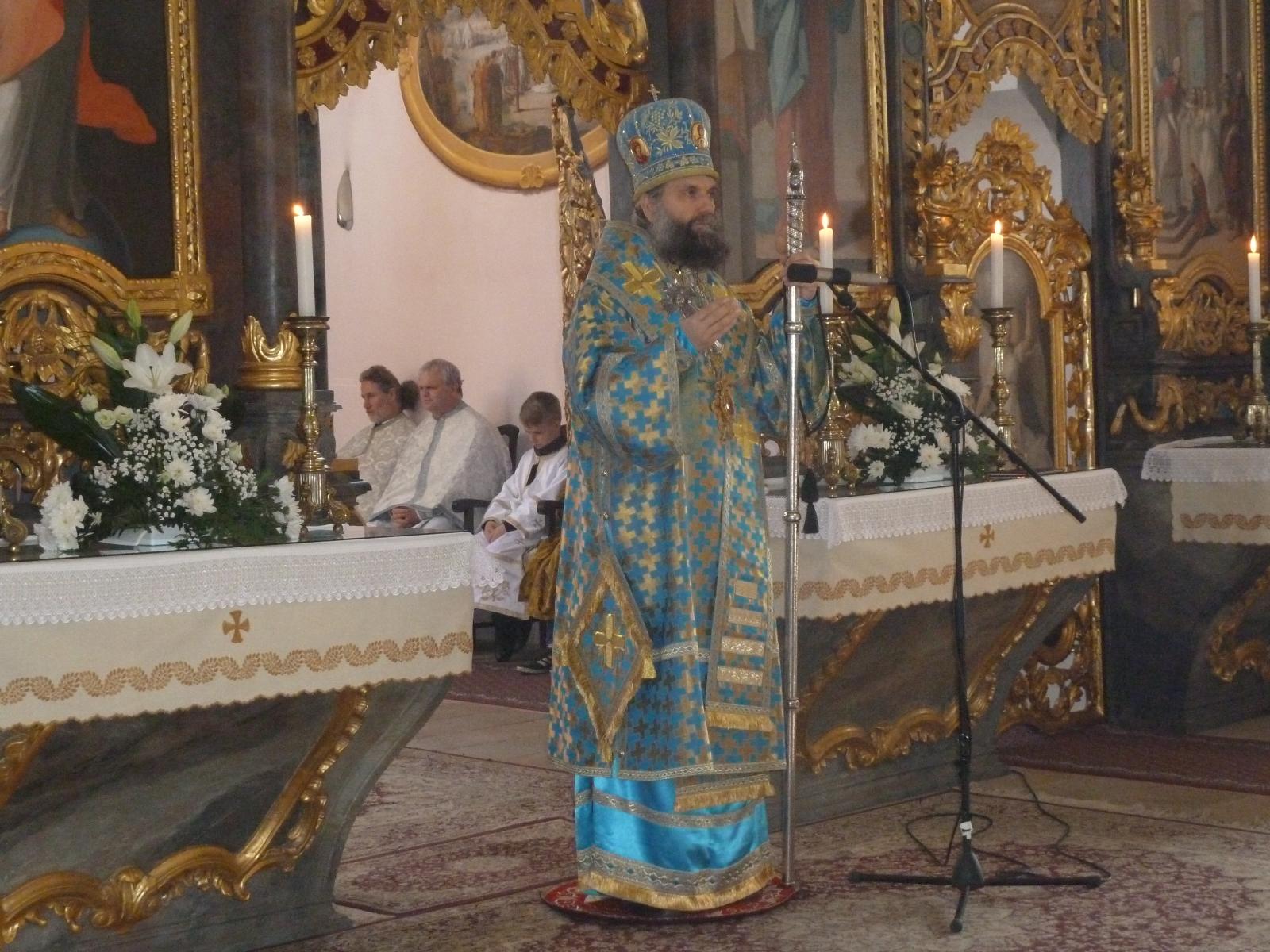 A homíliát érsek-metropolita atya az Istenszülő bevezetése a templomba ünneppel kapcsolatban tartotta. Prédikációjában felvetette a kérdést, hogy őseinket vajon mi vezethette arra, hogy erre az ünnepre szenteljék fel a templomot, hiszen nem találunk róla leírást a Szentírásban, az Újszövetségben. Az ősegyházban viszont nagyon korán elterjedt a Mária-tisztelet, Mária szerepének a jelentősége. Az apokrif irat alapján került előtérbe gyermekségtörténete, amelyből tudjuk, hogy Joachimnak és Annának öregségére született meg a kicsiny leányka, akit három éves korában vittek el a templomba és rögtön úgy érezte, hogy neki ott is van a helye. Kifejezhette a vágyát a szülők felé, akik szintén azzal a szándékkal mentek a templomba, hogy felajánlják a gyermeket, de ő is jól érezte magát Isten házában, és ott maradt, ott nőtt föl, ott készült föl a házasságra.