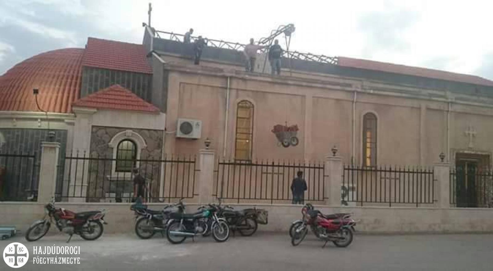 Szépen haladnak a munkálatok a Szíriában lévő al-Dmeine falu melkita templomán. Görögkatolikus egyházunk gyűjtését Fülöp metropolita atya személyesen vitte ki a falu lakóinak, akik ezt már akkor nagyon megköszönték. Meg is ígérték, hogy értesítést küldenek arról, hogy a kapott pénzt hogyan használják föl. Jelenleg folynak az építkezési munkák. Már sikerült megvásárolni az építőanyagokat, és a falu összefogásával elsőként a lerombolt tetőzetet hozzák teljesen rendbe.