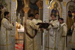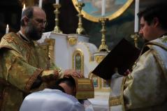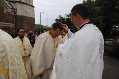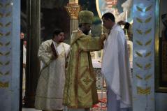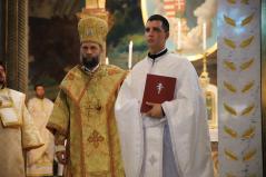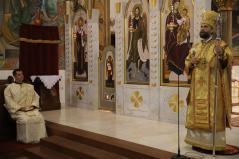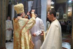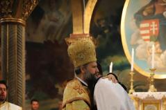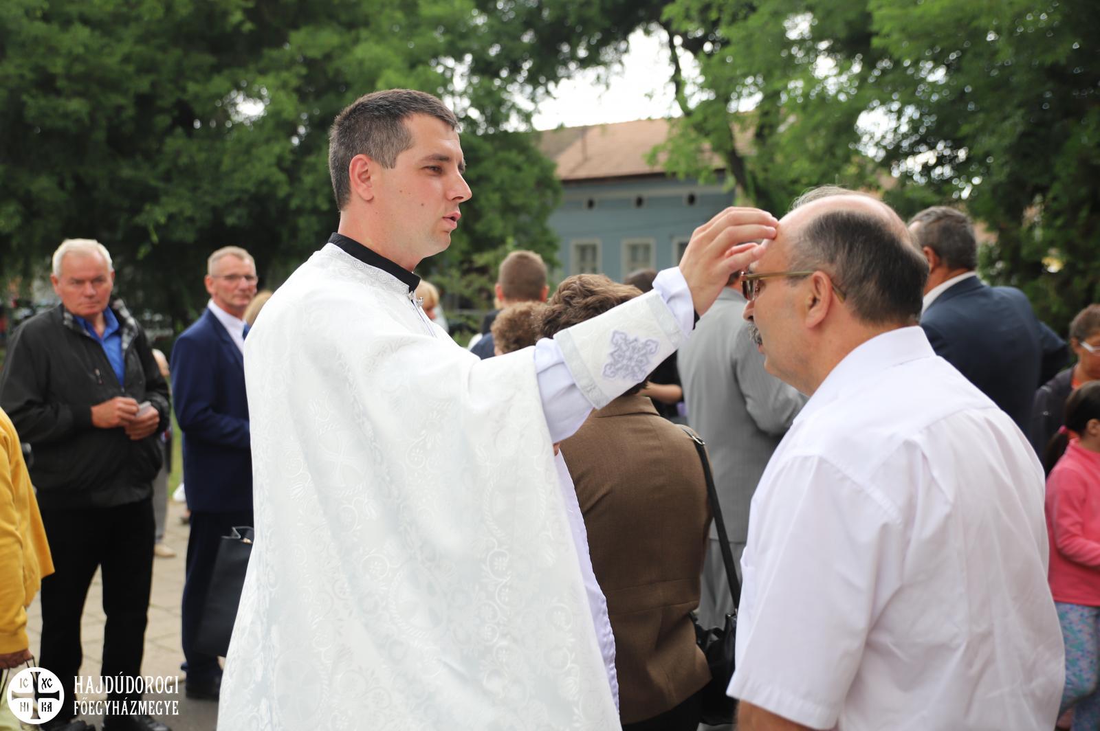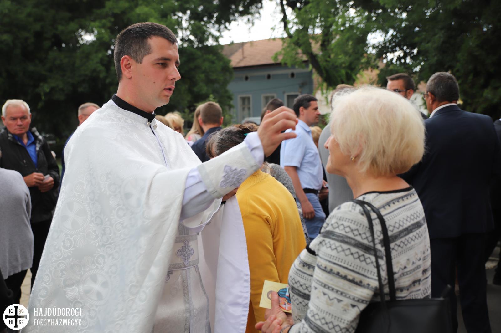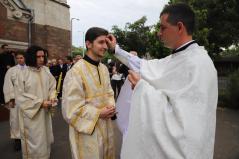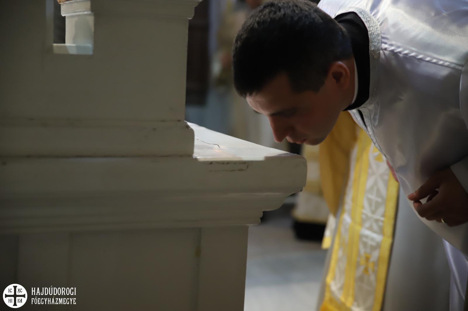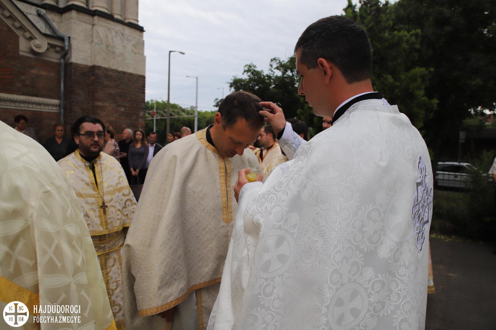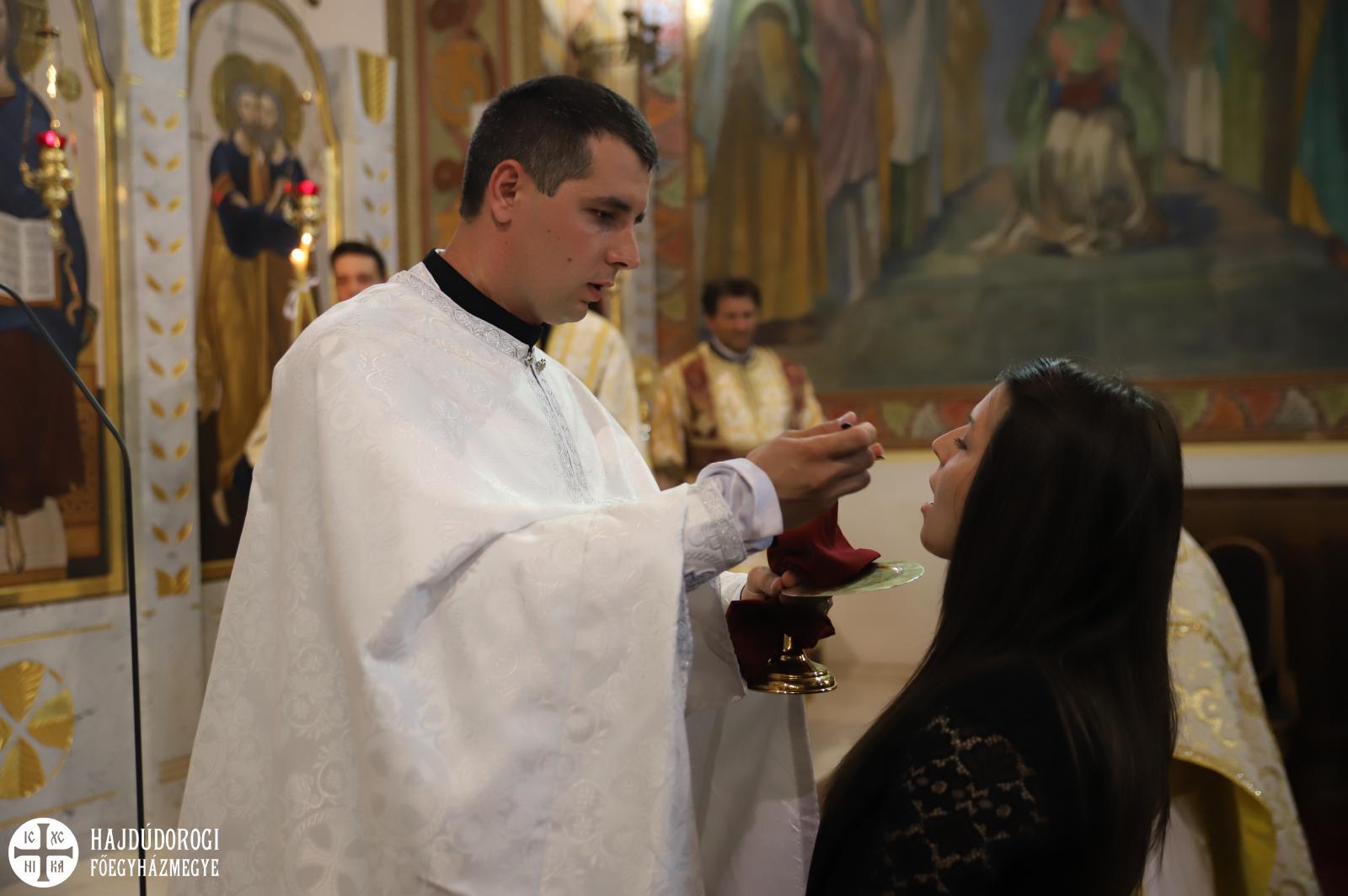 A Szent Liturgia elején érsek atya nem a sekrestyében, hanem az ikonosztázion előtt öltötte magára a püspöki jelvényeket, ezzel is jelezve, hogy ünnepi szertartásra gyűltek össze a hívők. Ennek részeként szentelték a Hajdúdorogi Főegyházmegye áldozópapjává Tatai Zoltánt. Az ő tolmácsolásában lehetett hallani Máté evangéliumából azt a fejezetet, amiben Jézus meggyógyítja a bénát.