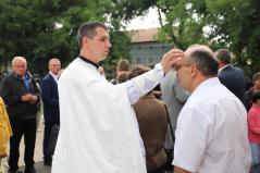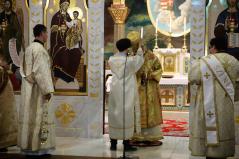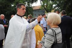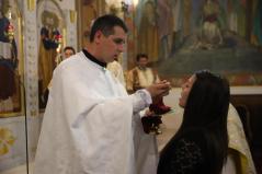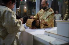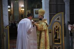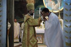 Nem is kellett sokat várni e különleges jelenetre, ami után szolgálatának első állomásaként áldoztathatott is a fiatal lelkipásztor. A Szent Liturgia végén a hála szavai következtek, majd – a főszékesegyház bejáratánál – a vecsernyei lítiában megáldott olajjal az újszentelt pap, újmisés áldásban részesítette érsek atyát, paptársait majd a híveket is.